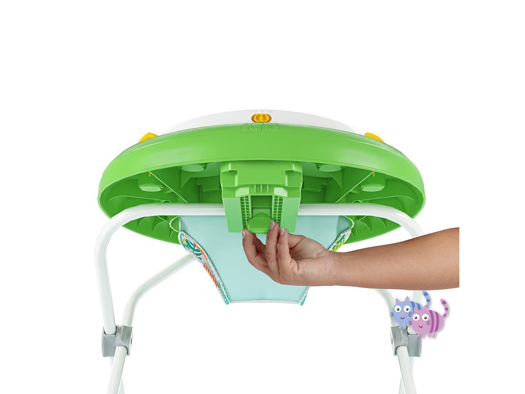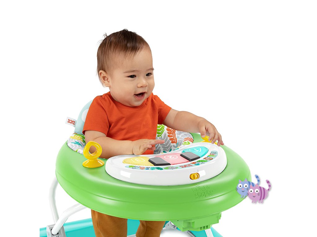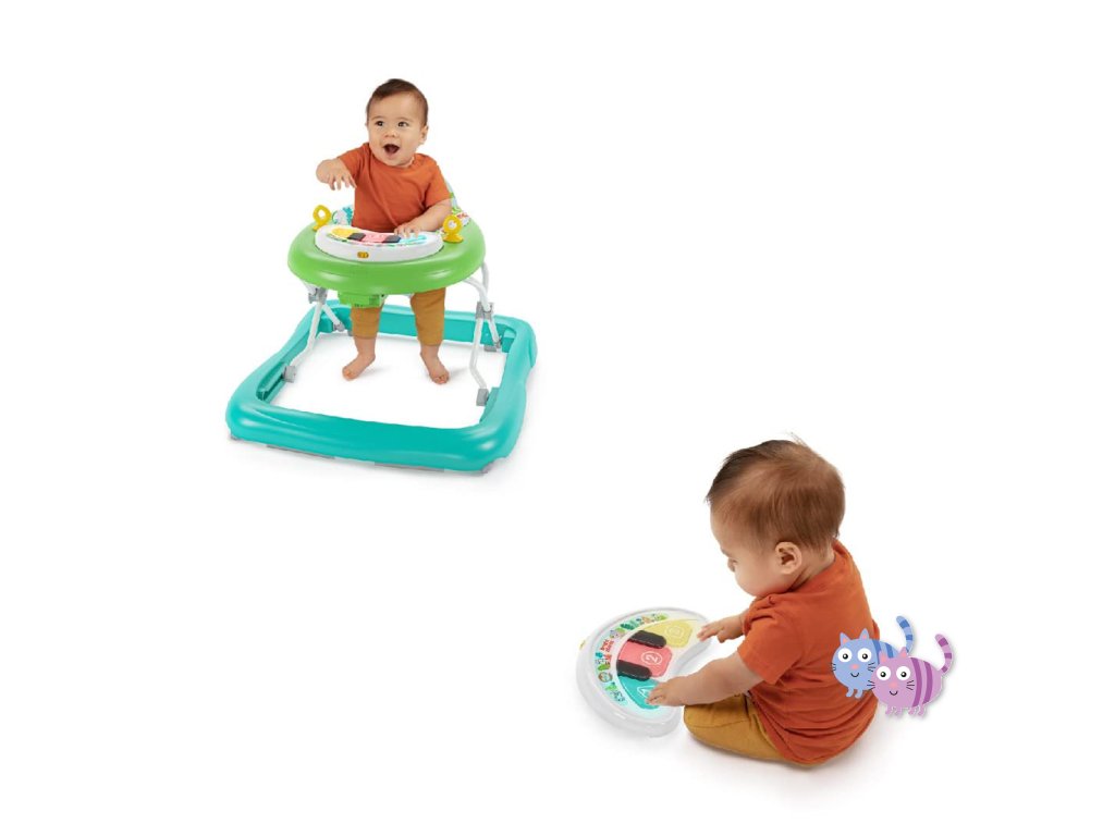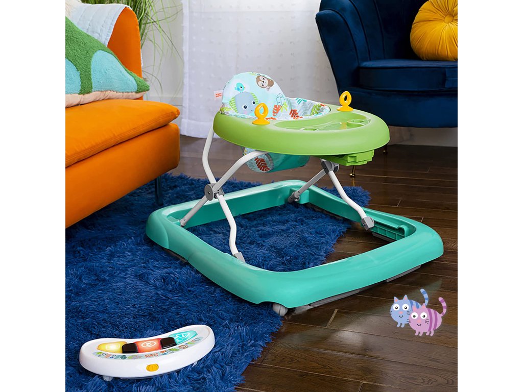 Odnímatelný hrací pultík piano s ovládáním hlasitosti nabízí spoustu zábavy díky světélkům, písničkám a zvukům – přehrává zvuky zvířat, přírody a zábavnou hudbu. Poskytuje tak zábavu během her i na podlaze nebo na cestách. Chodítko lze nastavit do 3 výškových poloh, čímž se přizpůsobuje růstu děťátka.