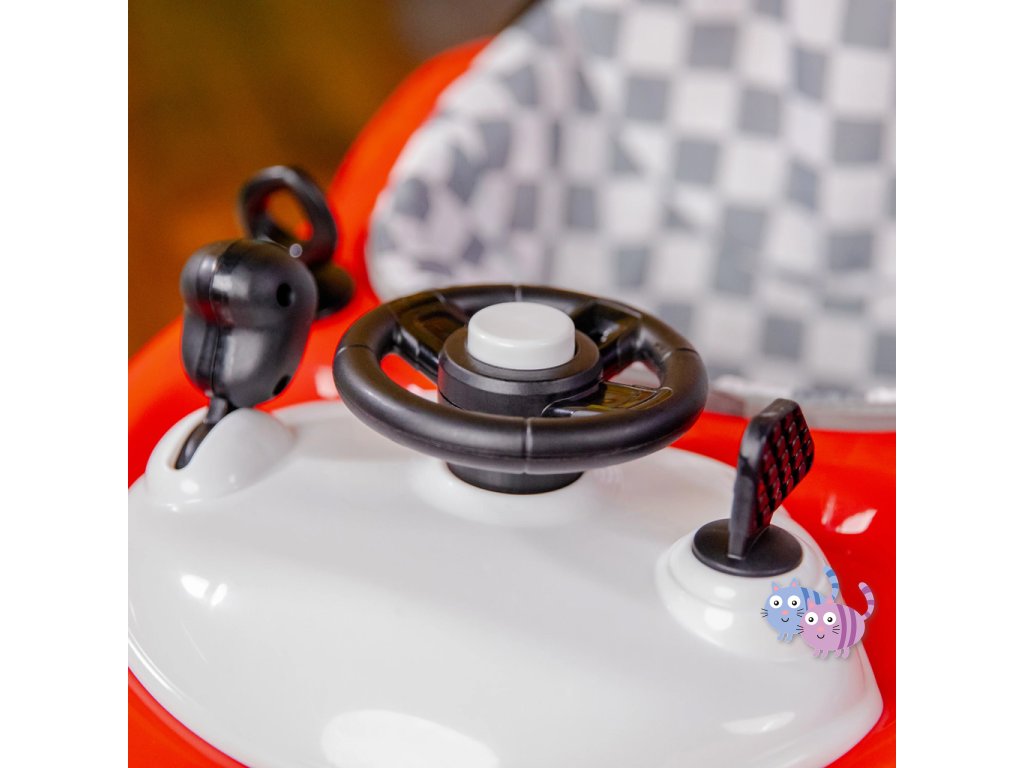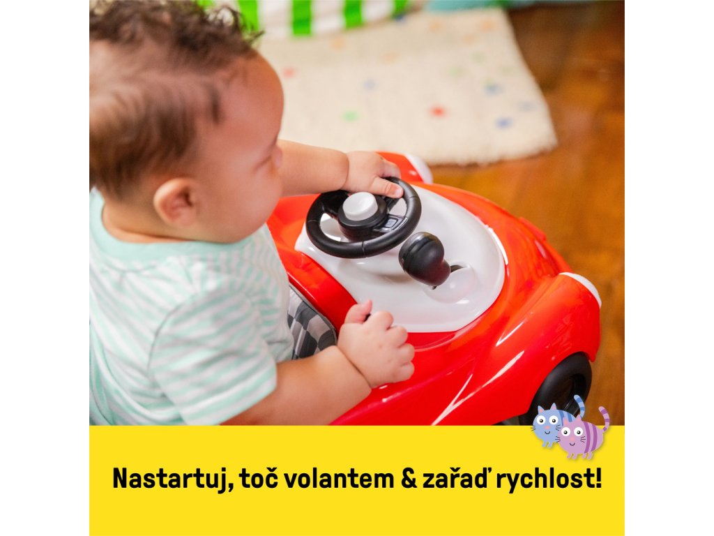 Toto dětské chodítko Racer nabízí 3 režimy růstu s děťátkem: tradiční auto chodítko, chodítko a přenosnou hračku. Spolu s volantem, řadící pákou a klíčem od auta pro „zapnutí“ zábavy můžete posadit děťátko na sedadlo řidiče a rozvíjet jeho jemné motorické dovednosti. Zamilují si zkoumání detailů auta a řízení jako máma a táta... a volant vydává zábavné cvakavé zvuky pro multismyslovou zábavu.