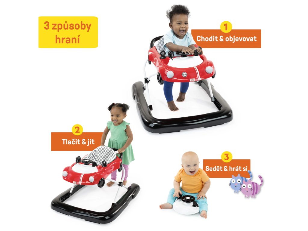 BRIGHT STARTS Chodítko 3v1 závodník Red 6-24m