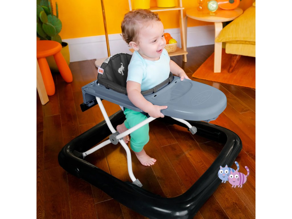 Konstrukce chodítka umožňuje jeho snadné skládání, uskladnění a dokonce i přenášení. Ani jeho údržba není náročná, sedací část lze snadno vyjmout a vložit do pračky a ostatní části lze snadno otřít. Bezpečnost zvyšují pryžová kola s brzdami a pevný rám. Možnost nastavení rámu chodítka do třech výškových poloh zajišťuje správný vývoj dítěte tím, že udržuje jeho nohy v ideální poloze.