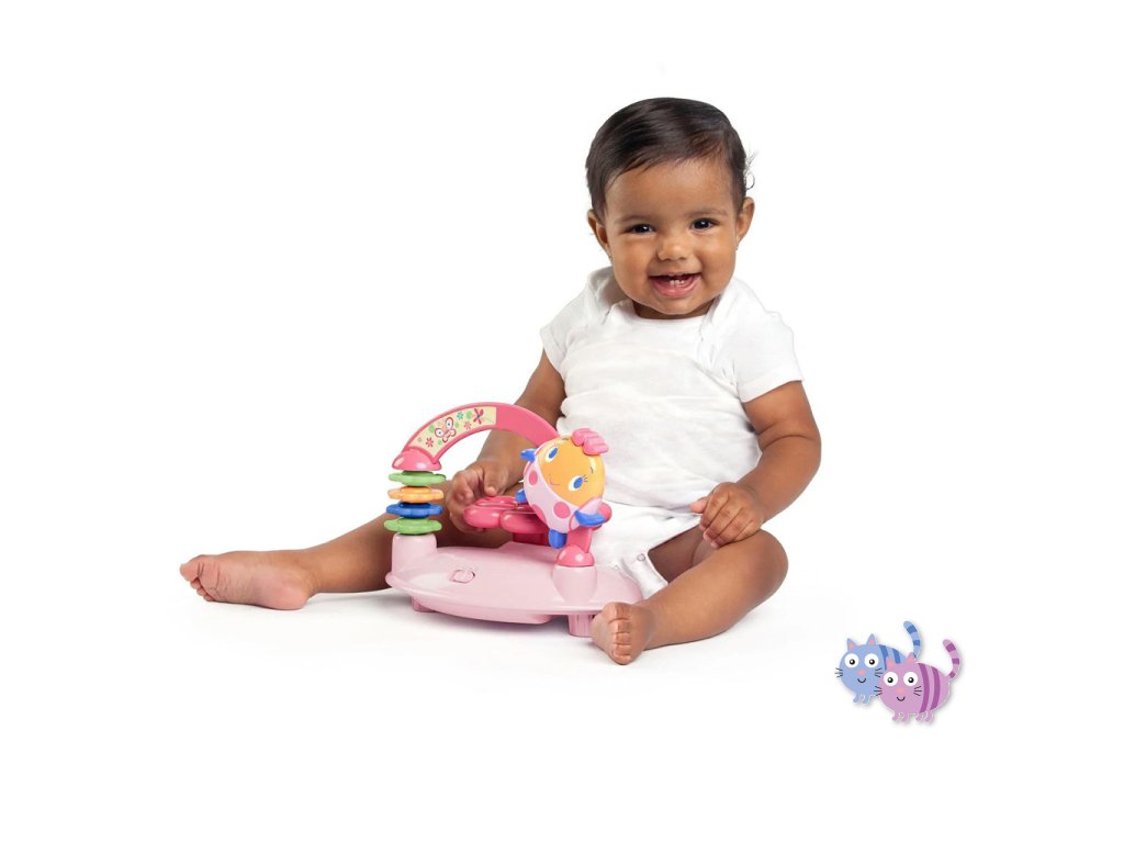 Odnímatelný elektronický hrací pultík obsahuje volant, který aktivuje světla, hudbu a melódie. Je dodáván s ovládáním hlasitosti. Pultík je možné použít pro podlahové hraní - je odnímatelný. Vysoké opěradlo poskytuje další podporu a pohodlí pro dítě.