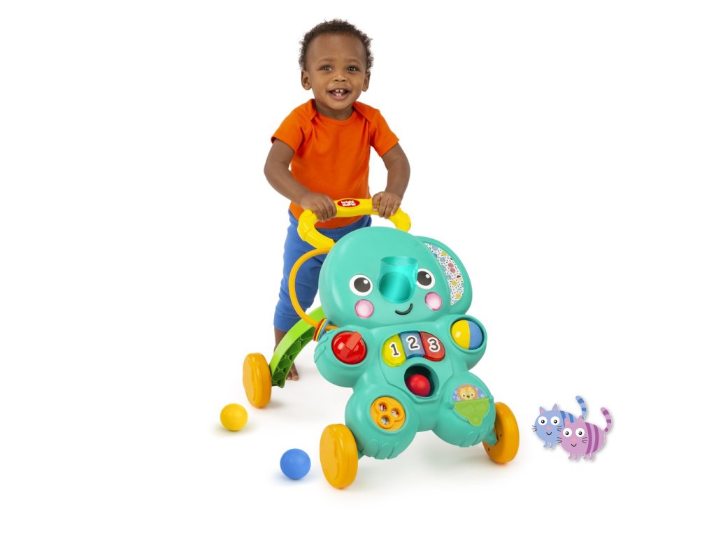 - design Stroll 'n Roll 2 v 1 značky Bright Starts kombinuje hravost hračky na sezení a hraní s dobrodružstvím chodítka na tlačení