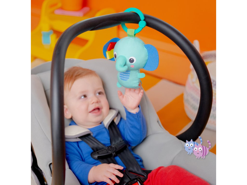Obsahuje plyšovou hudební hračku slůně, zrcátko, chrastítko sluníčko, hračku s listy a chrastítko ve tvaru prstenu.