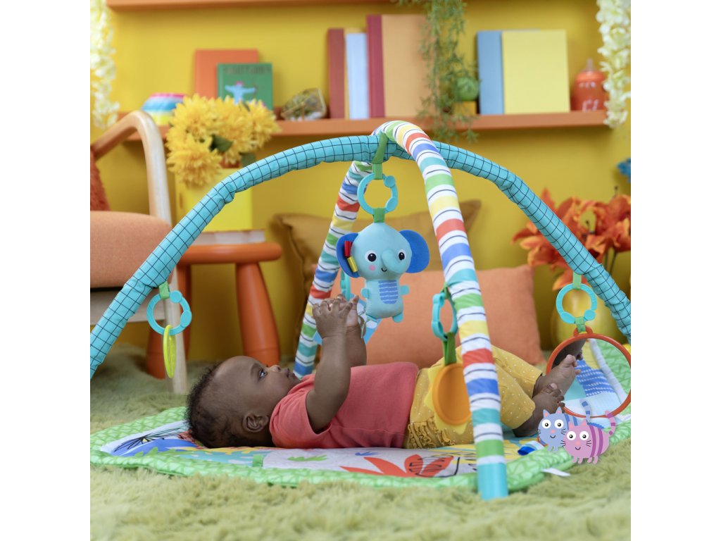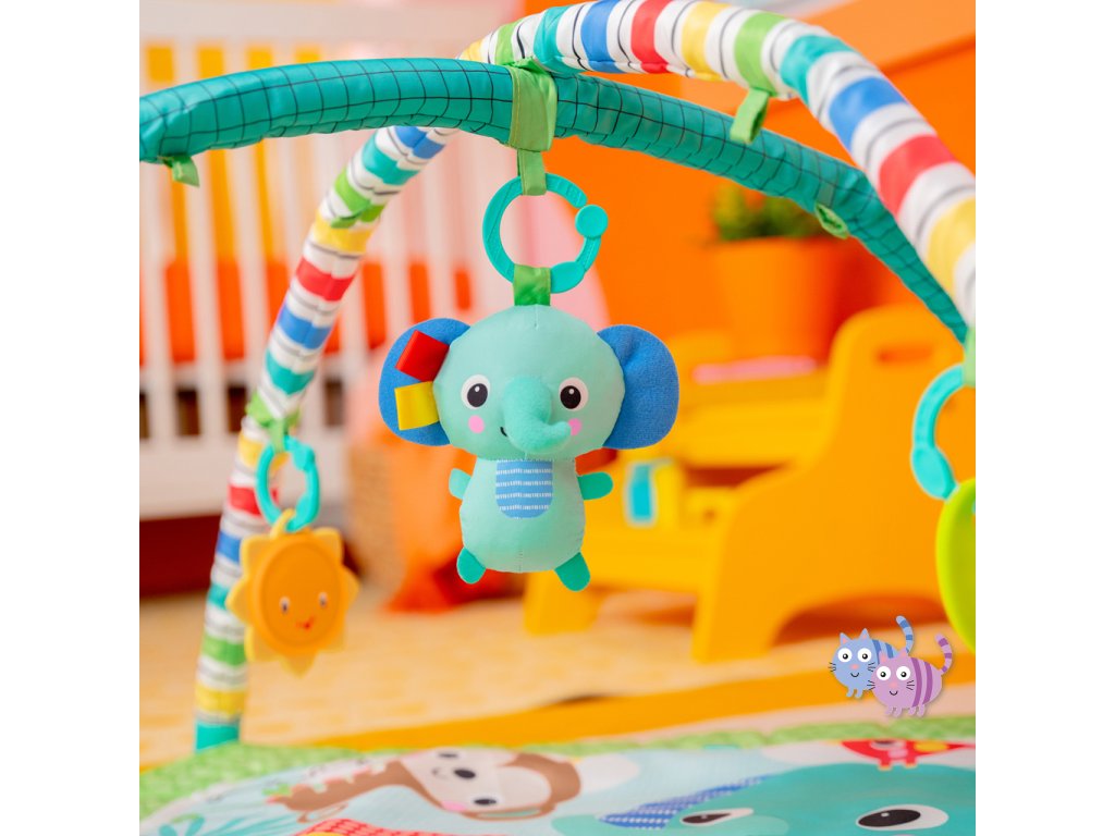 Sloní kamarád hraje 4 melodie, aby zabavil vaše děťátko. Hračky na bříško jsou všechny na odnímatelných článcích, takže hračky z deky můžete přeměnit na hračky do kočárku. Tato dětská herna je plná pestrobarevných zvířecích postaviček se slonem, opičkou a lvem. Hrazdička se snadno odstraní, když vaše děťátko začne růst a toulat se.