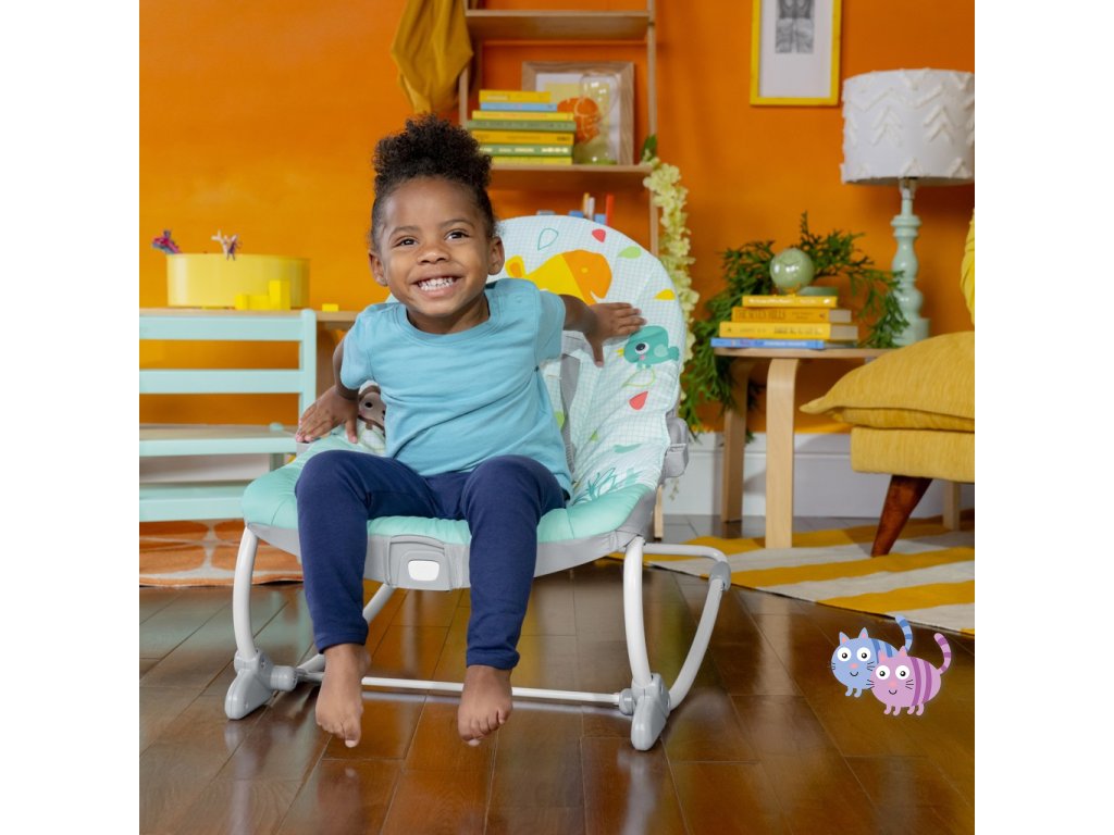 S houpacím a stacionárním sedadlem Wild Vibes 2 v 1 od Bright Starts se vaše divoké dítě dostane na uklidňující safari. Toto víceúčelové houpátko roste spolu s dítětem a je skvělé pro kojence i batolata!