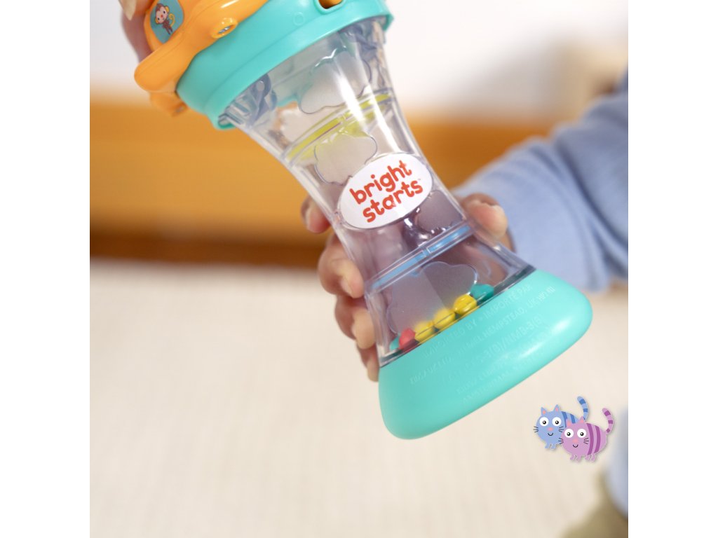 - Potřes hračkou a sleduj, jak kuličky padají jako kapky deště