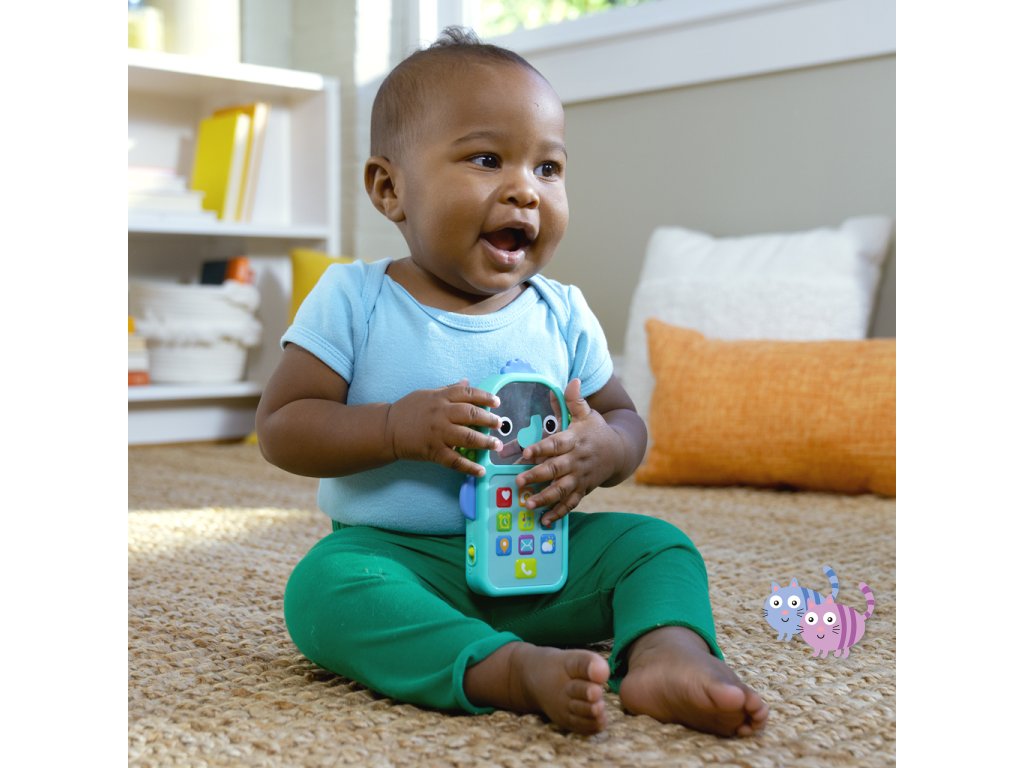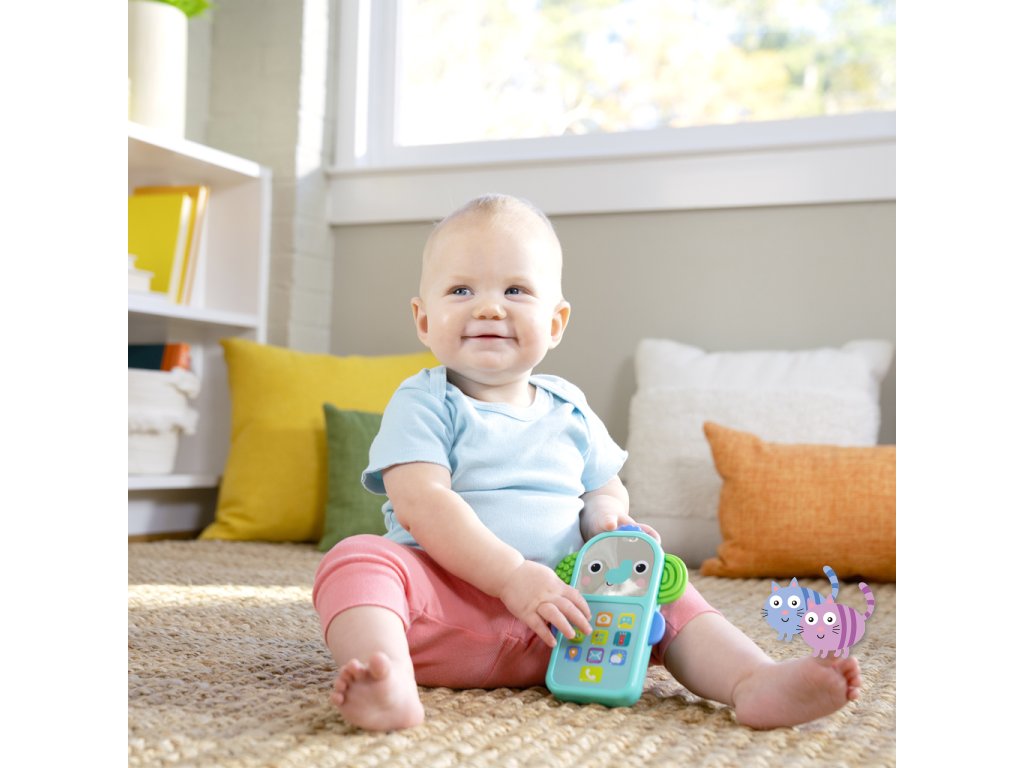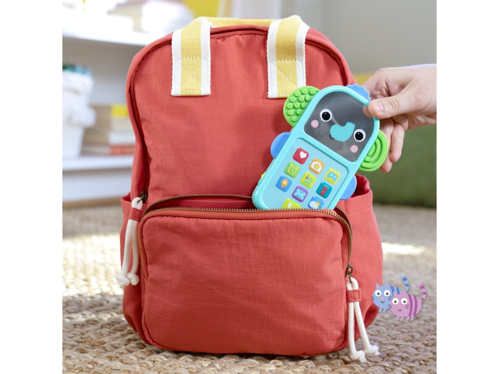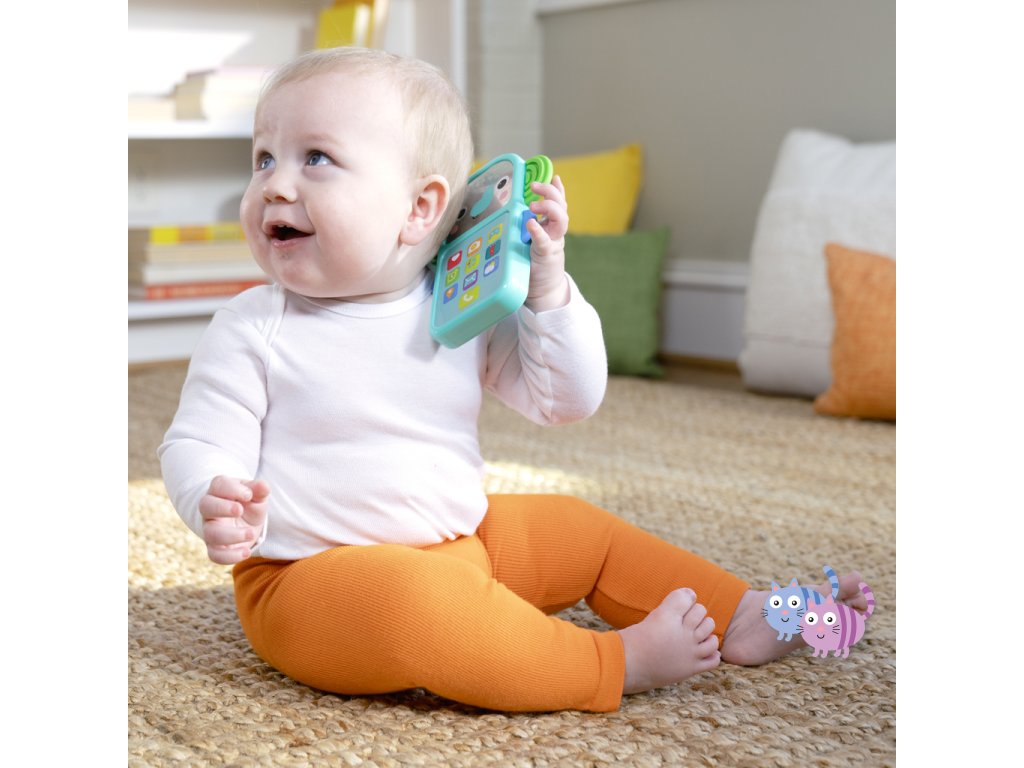 Tento veselý sloníkový telefon je jako stvořený pro malé ručičky a přináší spoustu zábavy a interakce. Interaktivní klávesnice je plná známých ikonek aplikací a zvuků, díky čemuž se děťátko bude cítit jako máma nebo táta. Každým stisknutím tlačítka se aktivují světýlka a melodie. Rozkošná sloníkova tvářička má svítící líčka a zrcátko pro objevování sebe sama. Jeho ouška jsou texturována pro dodatečnou senzorickou hru a hmatovou stimulaci! Hračka obsahuje více než 20 zvuků a melodií a funguje na 2 AAA baterie (nejsou součástí balení). Díky lehkému a přenosnému designu je ideální pro zábavu na cestách. Jednoduše se vejde do většiny přebalovacích tašek a skvěle doplní sbírku hraček na kočárek. Vhodné pro děti od 6 měsíců. Výborný dárek na křtiny, narozeniny či Vánoce.