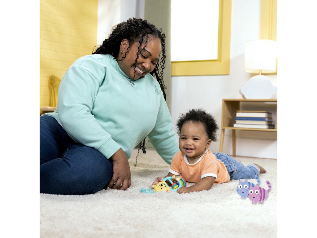 - 3 způsoby hraní podporující vývoj – posouvání barevných korálků (jemná motorika), chrastění (sluchové podněty), a dotek texturovaných kroužků (hmatová stimulace)