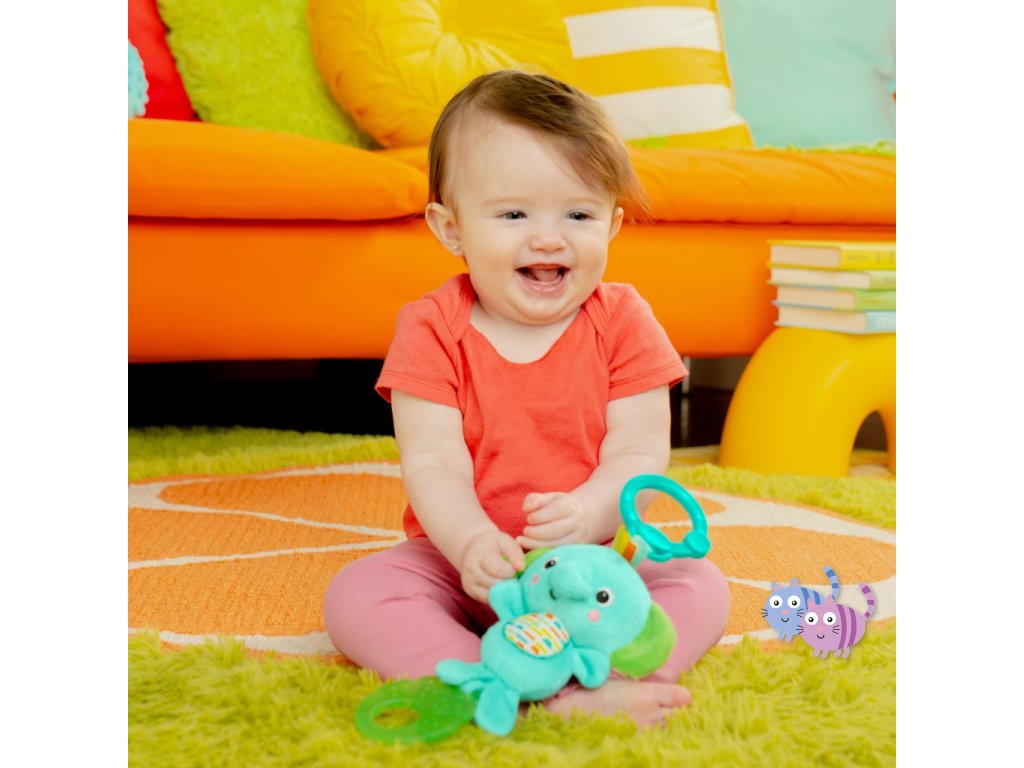 Když miminko zatáhne za zelený list, jeho kamarád z džungle zahraje 4 různé melodie! Díky stimulujícím barvám, texturám a zvukům bude děťátko na svého nového sloního kamaráda sahat a chytat ho, zatímco vy si budete užívat sledování rozvoje nových dovedností hlavně během prvního roku dítěte.