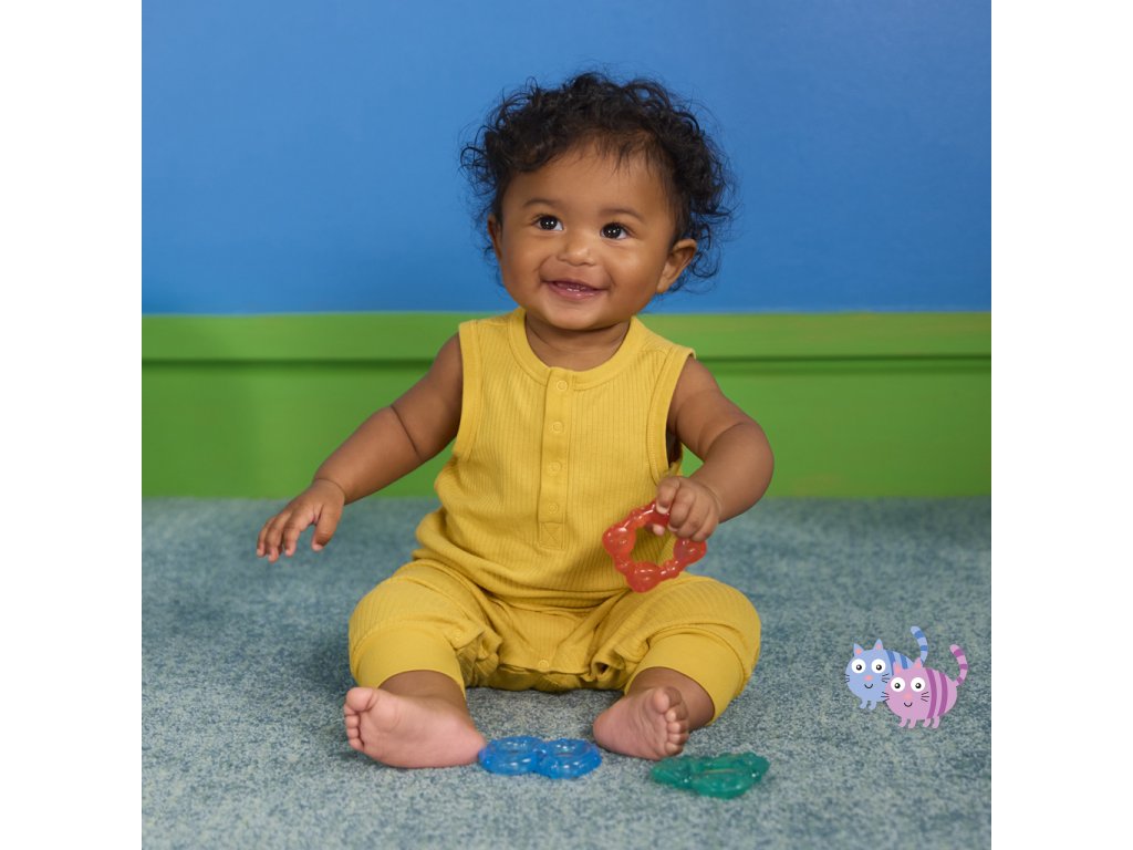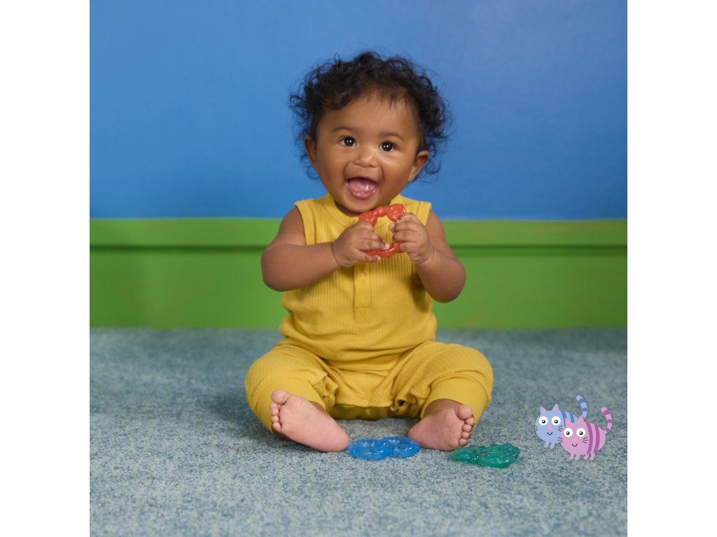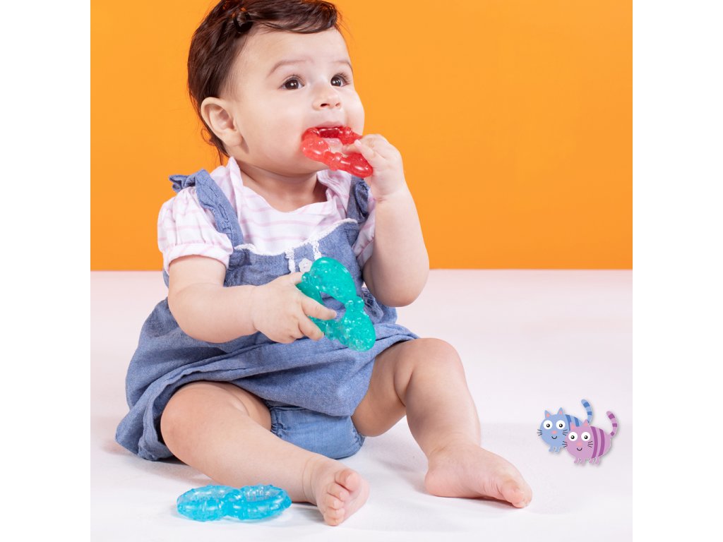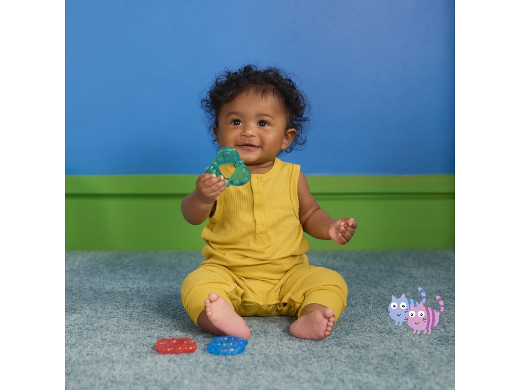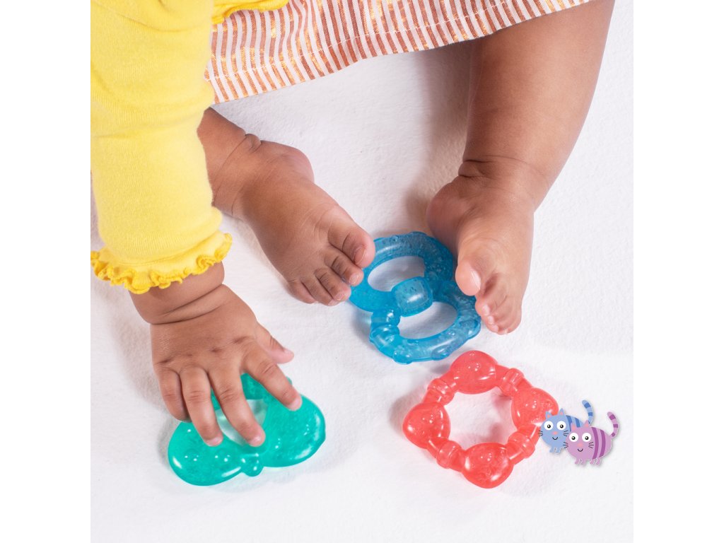 Ulevte svému miminku během prořezávání zoubků s chladivými kousátkami od Bright Starts. Každý ze tří barevných kroužků je naplněn čistou vodou, kterou můžete zchladit v chladničce pro extra úlevu. Kousátka mají různé textury a jsou navrženy pro snadné uchopení malými ručičkami, což podporuje rozvoj jemné motoriky a senzorické stimulace. Děťátko ohromí i zářivé barvy a kousátka nebsahují BPA, takže jsou mimořádně bezpečné pro vaše děťátko.