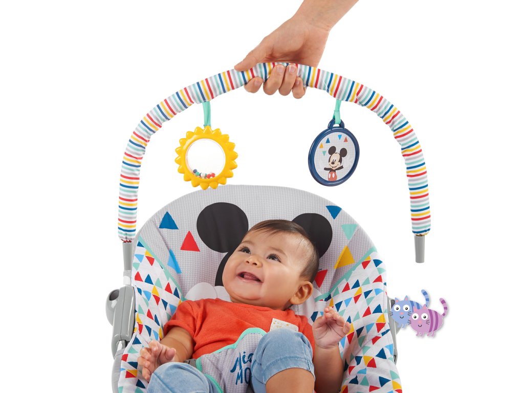 Když přijde čas na hraní, dvě zavěšené hračky promění lehátko na přenosné herní centrum. Maminka či tatínek mohou magicky odejmout hrazdičku s hračkami jednou rukou, což výrazně usnadňuje zvedání či ukládání malého myšáka.