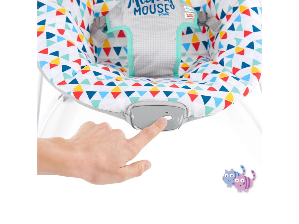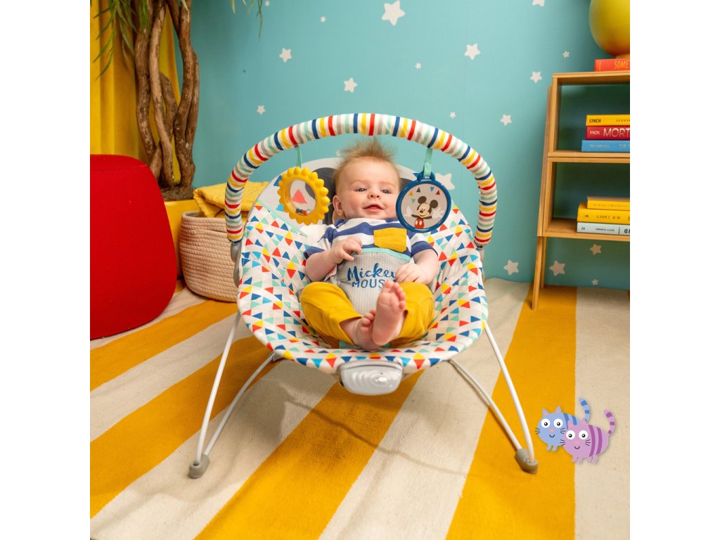 Kdo jiný dokáže lépe uklidnit miminko než ikonický kamarád Mickey Mouse? Toto dětské vibrační lehátko se stane tím „nejšťastnějším místem na Zemi“. Jeho hluboké, kolíbavé sedátko poskytuje extra pohodlí, takže se vaše děťátko může pohodlně uložit a odpočívat. Slyšeli jste blábolení nebo spokojené mumlání? To se miminko jen těší z uklidňujících vibrací tohoto vibračního lehátka.