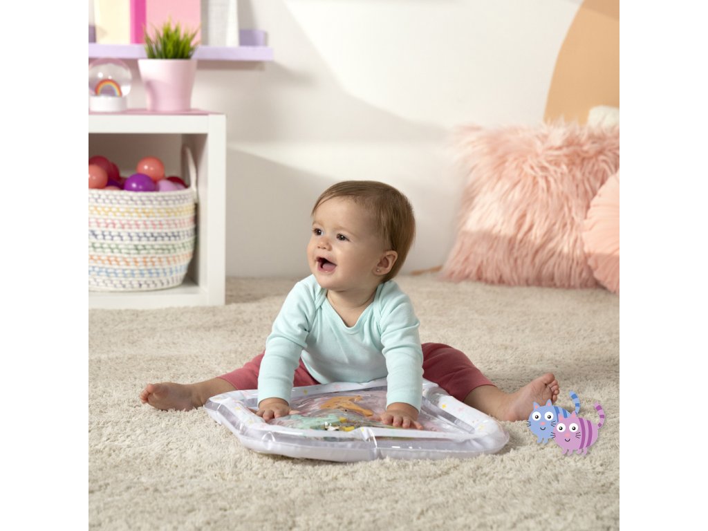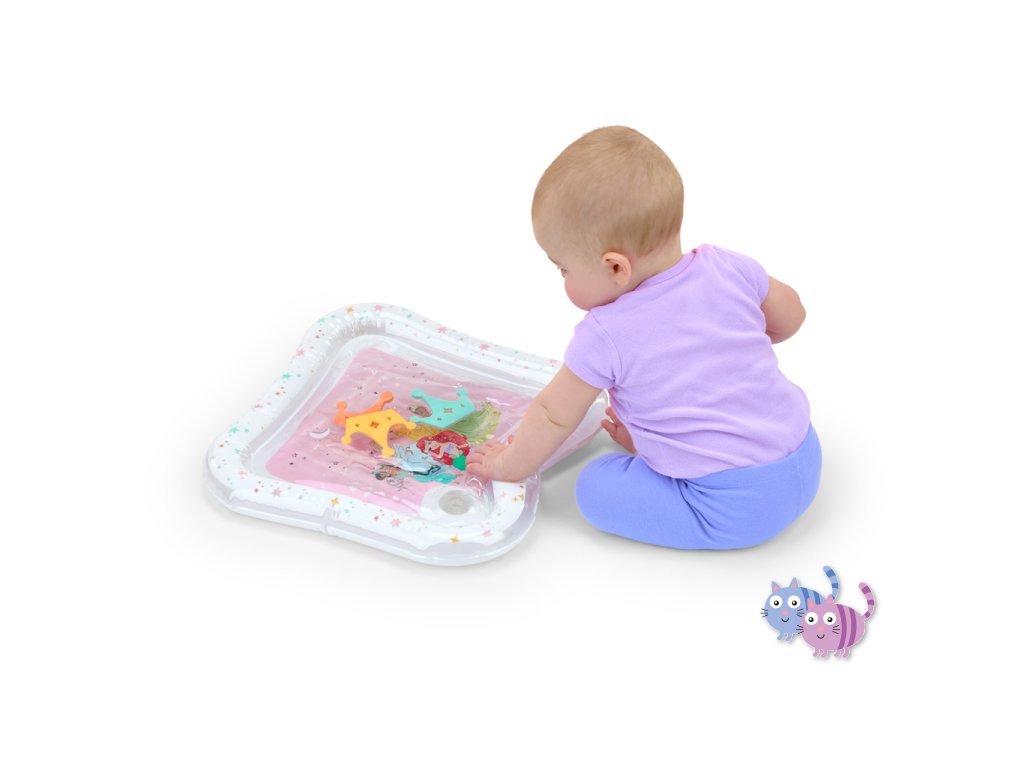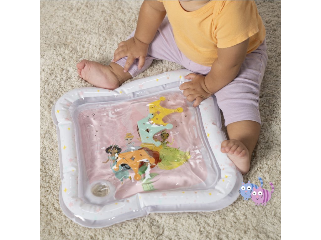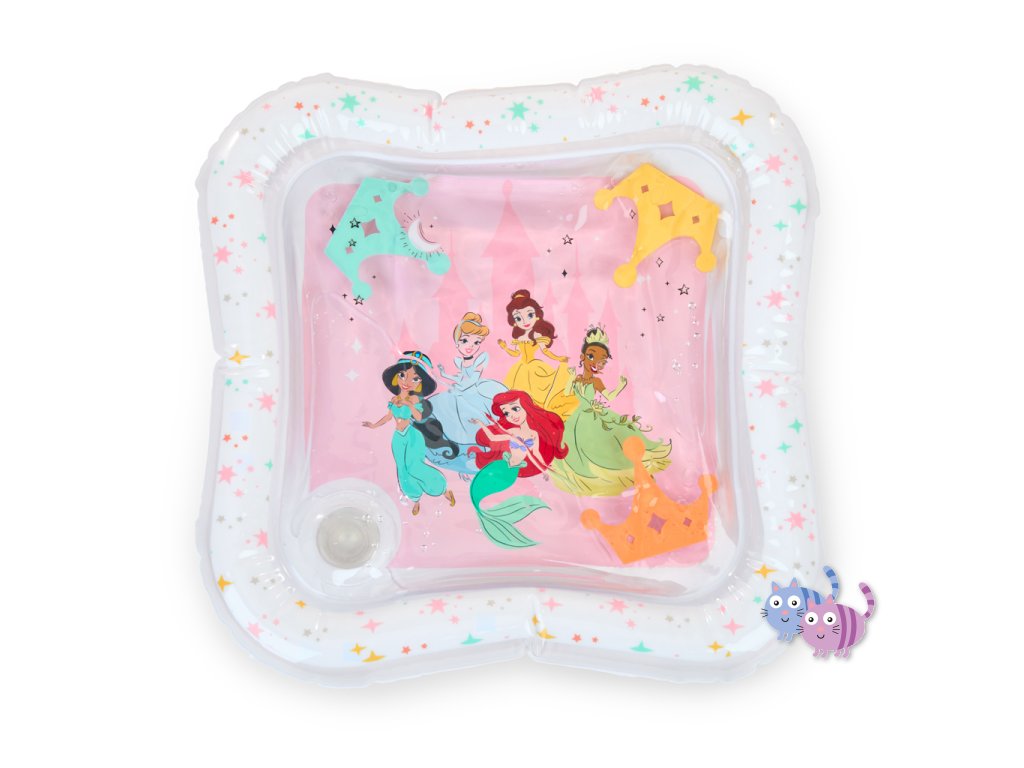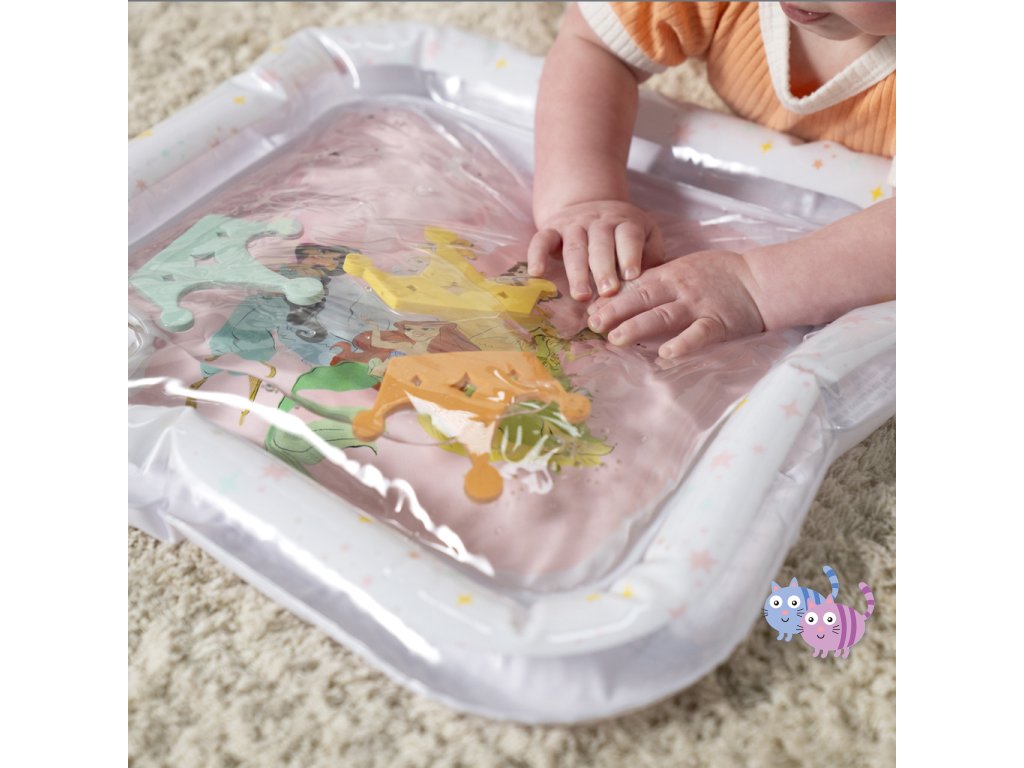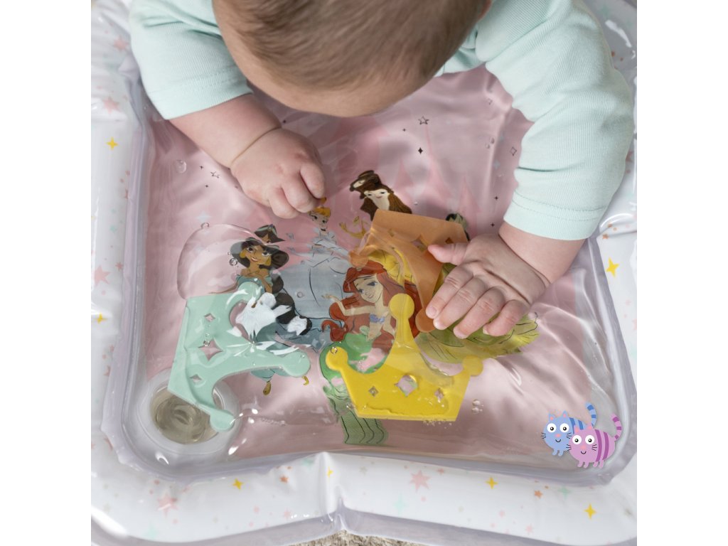 Přivítejte malé princezny do světa zábavy s okouzlující vodní podložkou Disney Princess. Tato hravá a praktická podložka přemění klasickou dobu trénování na bříšku na zábavné a podnětné dobrodružství. Tři plovoucí korunky se vznášejí uvnitř podložky, čímž stimulují zrak, dotek a koordinaci již od nejútlejšího věku. Vodní podložka s Disney princeznami je originální a praktický dárek, který rozzáří oči každé malé princezně – a ušetří rodičům úklid po hraní s vodou!