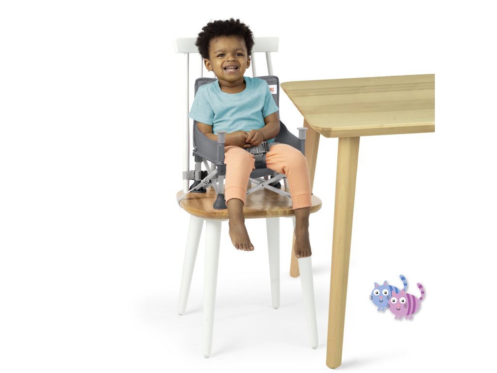 Od miminka po batole, od jídla po hraní – tato multifunkční cestovní židle poskytuje vašemu dítěti bezpečné místo k sezení. Tato jednička od výrobce 1 v kategorii jídelních židlí nabízí 3 režimy používání: podlahová židle pro miminka, jídelní židle s odnímatelným pultíkem a podsedák pro batolata. Pro nejmenší ji můžete připevnit na jídelní židličku pro dospělé pomocí přiložených popruhů a BPA free pultíku a vytvořit tak přenosnou vysokou židličku. Pro starší děti lze pultík odebrat a použít židli jako podsedák u stolu. V podlahovém režimu můžete Pop ‘N Sit využít kdykoli potřebujete další sedadlo – na piknicích, sportovních akcích nebo doma! Zadní kapsa slouží k uložení každodenních nezbytností. Po použití se jednoduše složí do kompaktního rozměru a uloží do přenosné tašky s ramenním popruhem a další kapsou. Pultík je vhodný do myčky a potah sedáku lze prát v pračce. Neutrální šedé barevné provedení. Testováno a schváleno nezávislou certifikací.
