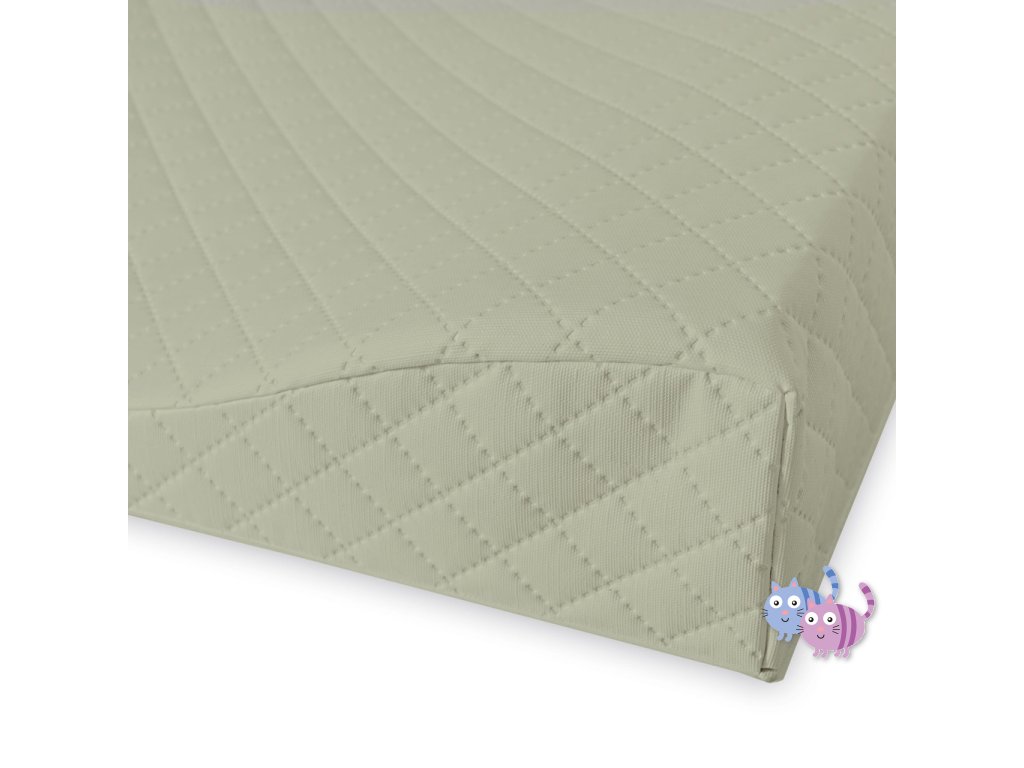 Podložka je vyrobena z bezpečné a vysoce kvalitní certifikované PVC fólie, která je nejen pevná a odolná, ale také naprosto nezávadná při kontaktu s jemnou dětskou pokožkou. Výplň podložky je měkká a zajišťuje dítěti pohodlí během péče. Podložka je určena k položení na komodu nebo jiný stabilní povrch.