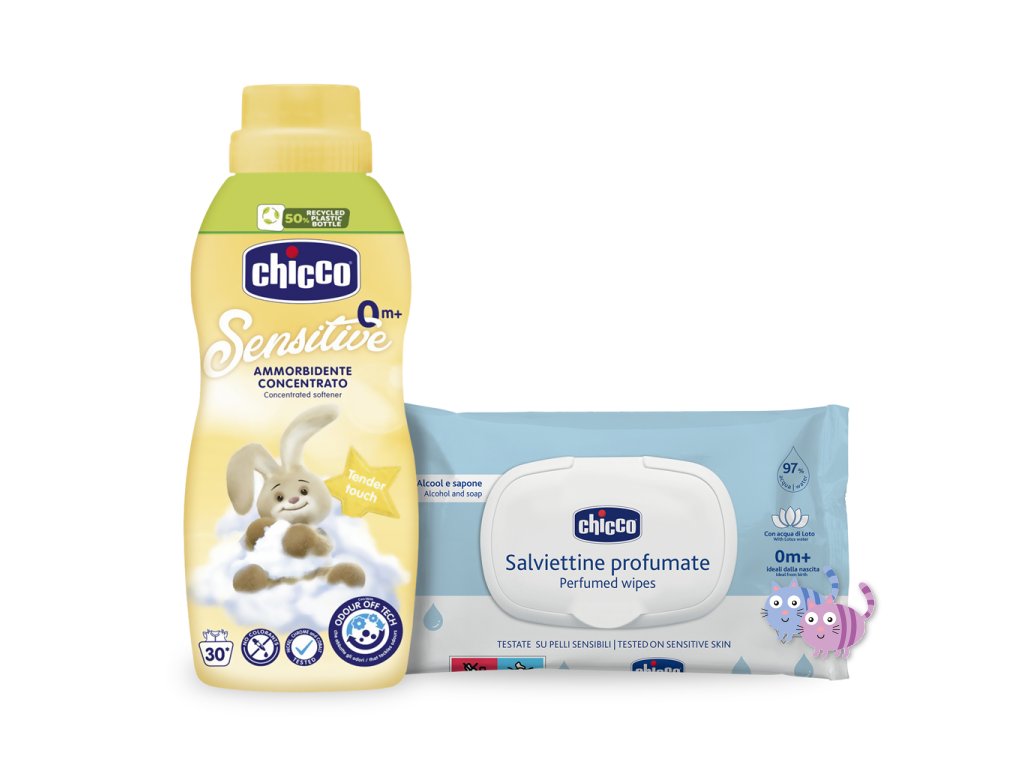 Chicco aviváž osvěžuje a zjemňuje všechny dětské věcičky miminka bez podráždění jeho citlivé pokožky.