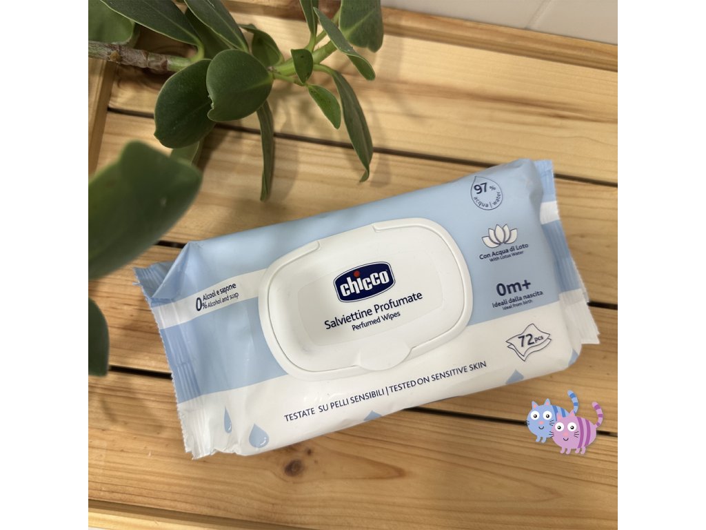 Vlhčené parfémované ubrousky Chicco čistí, osvěžují a hydratují citlivou dětskou pokožku. Složení s 97% vody a výtažkem z lotosového květu je ideální při přebalování i k čištění dětských rukou a obličeje.