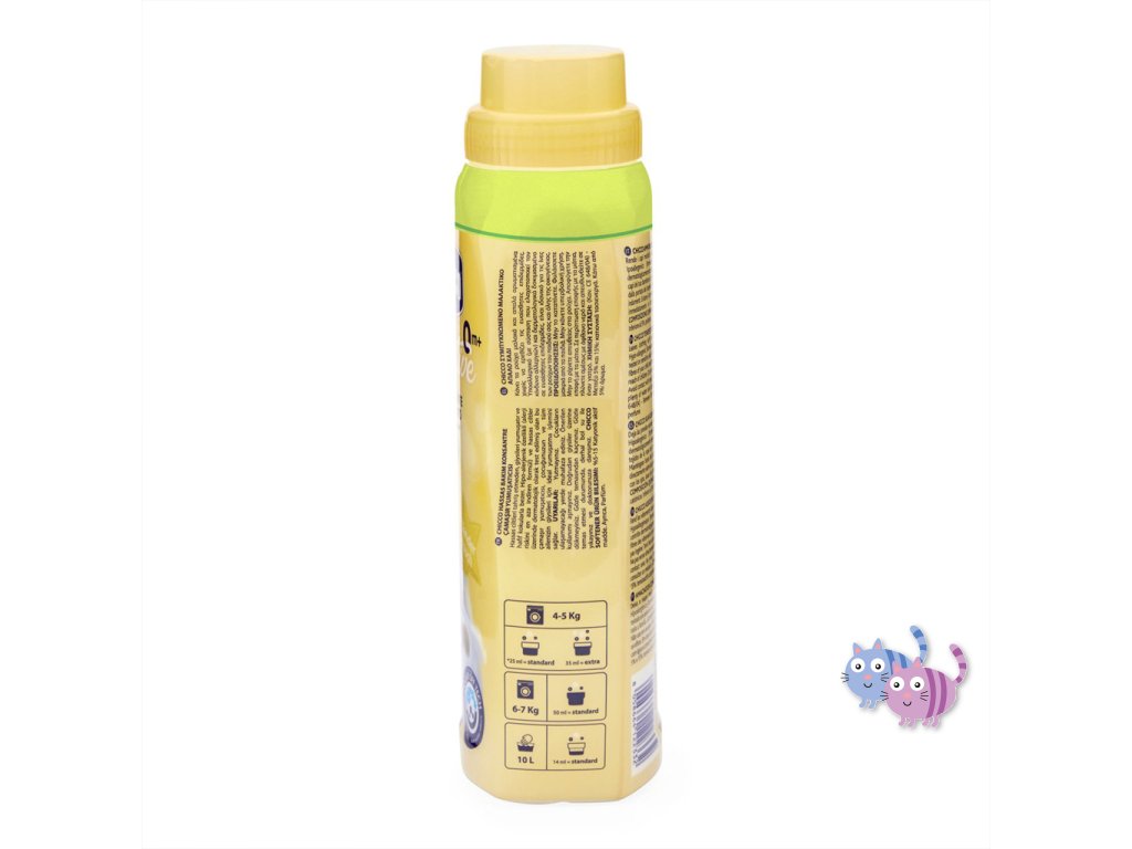Hypoalergenní, neobsahuje barviva a je dermatologicky testováno na citlivé pokožce. Koncentrované složení s "zápach odstraňující" technologií, která zanechává oblečení čisté a jemně navoněné.