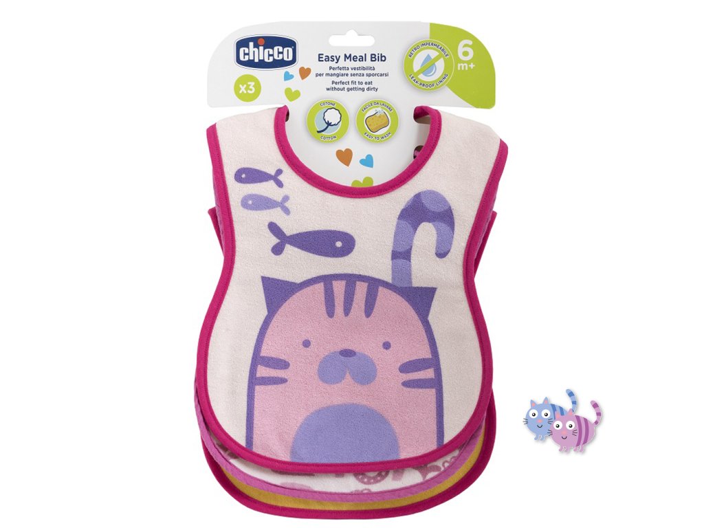 Bryndáčky Chicco Easy Meal jsou vyrobeny z měkké bavlny a jsou ideální k zabránění vzniku skvrn na oblečení, když začne dítě s prvními pokusy o stolování.
