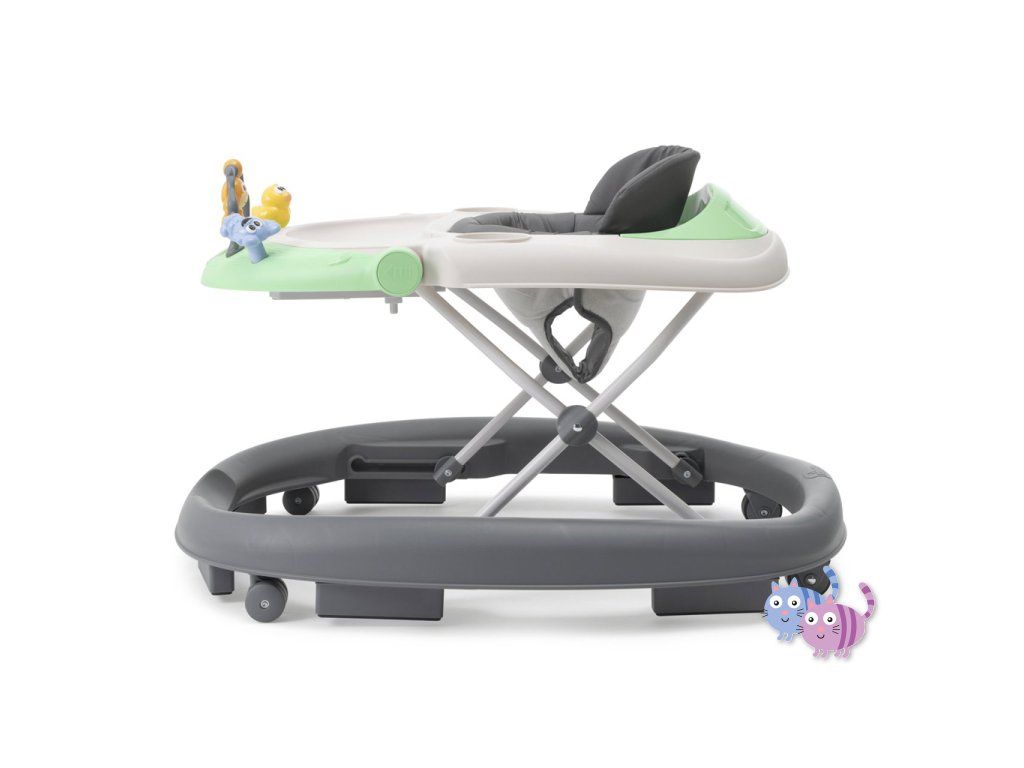 Zábavné chodítko Walky Talky bylo navrženo podle doporučení pediatrů jako podpora při prvních pohybech dítěte. Má nastavitelnou výšku, díky čemuž zajišťuje správný kontakt nohou dítěte a podlahy. Integrovaný hrací panel obsahuje hračky, které stimulují smyslový a motorický vývoj dítěte. Sedátko je dostatečně široké, pohodlné a bezpečné. Výhodou je kompaktní skládání, takže jej umíte jednoduše skladovat a přepravovat.