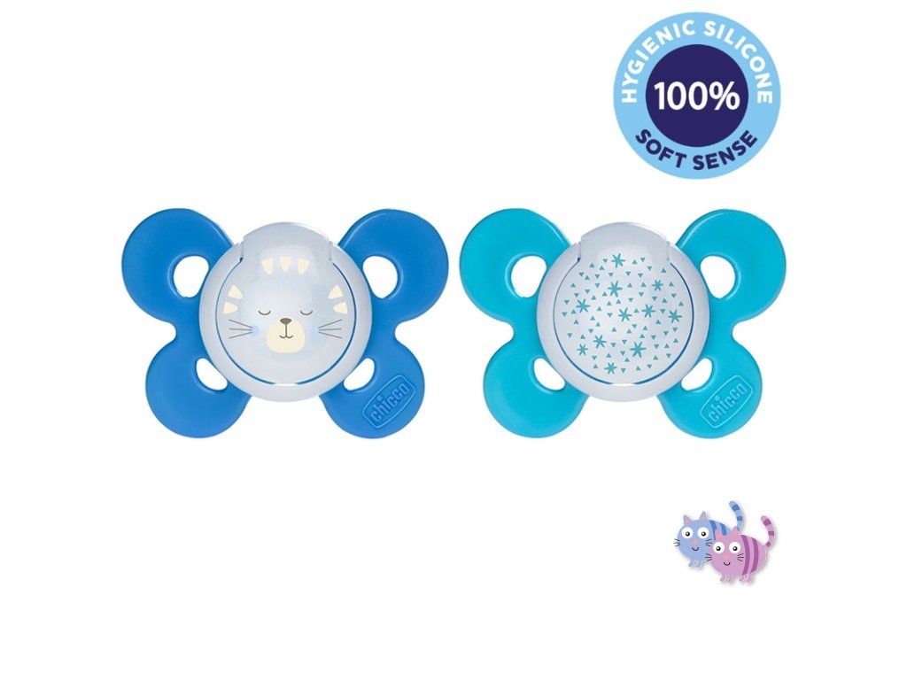 CHICCO Dudlík Physio Comfort silikon noční 16-36m chlapec - kočka/hvězdy 2 ks