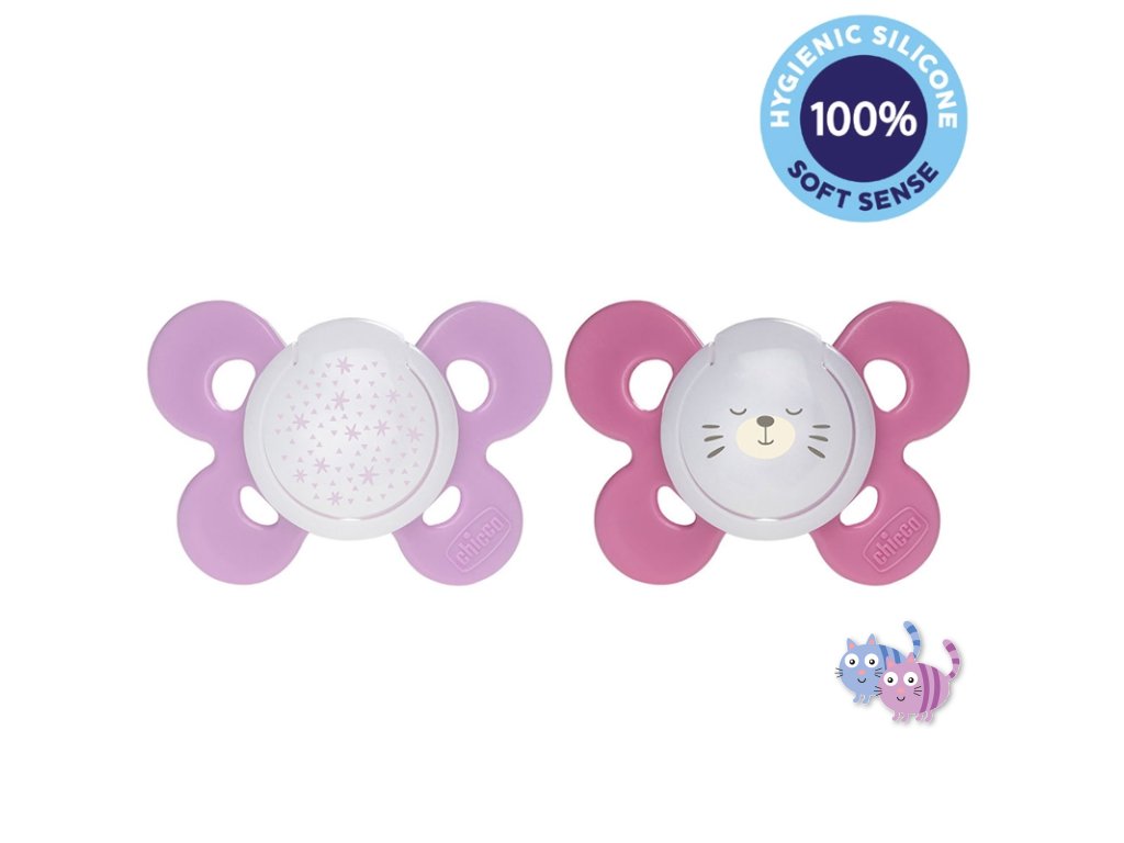 CHICCO Dudlík Physio Comfort silikon noční 16-36m dívka - hvězdy/méďa 2 ks