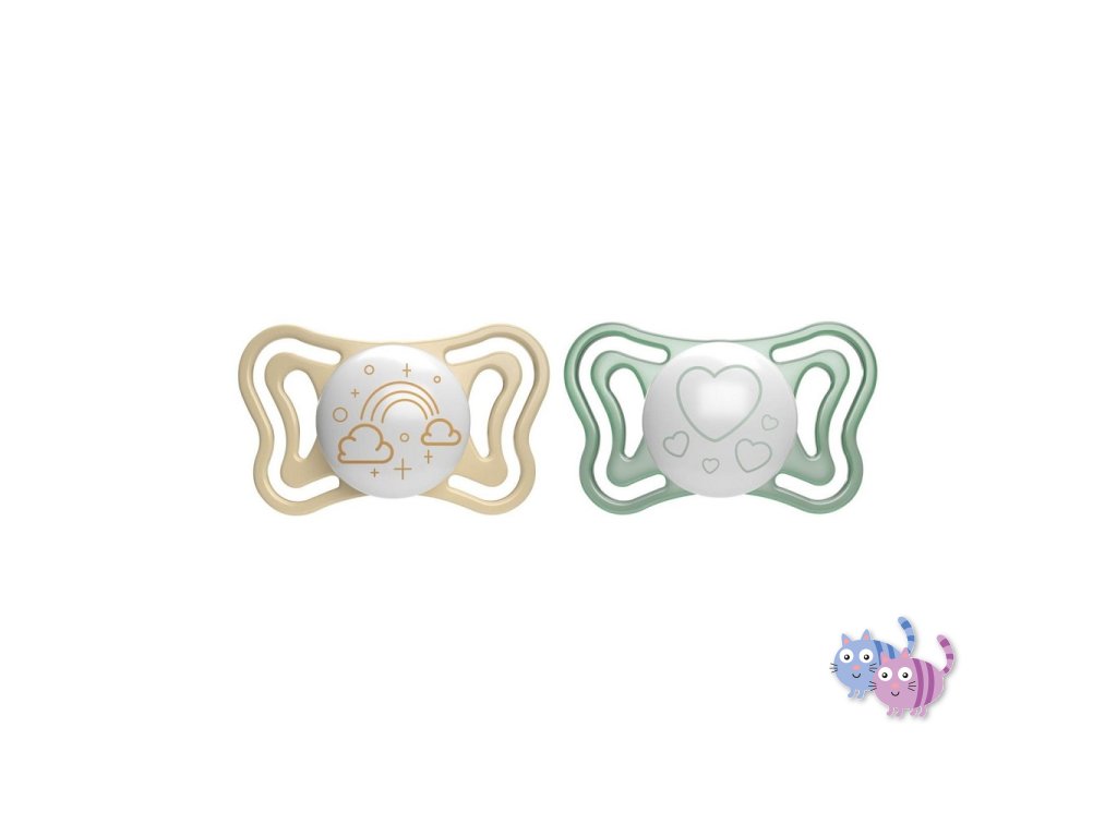 Se speciálním nočním designem bude hledání dudlíku v noci jednodušší! Vnitřní část dudlíku svítí ve tmě, a to po celou noc. Pro nabití na maximální jas jej stačí vystavit přirozenému světlu.