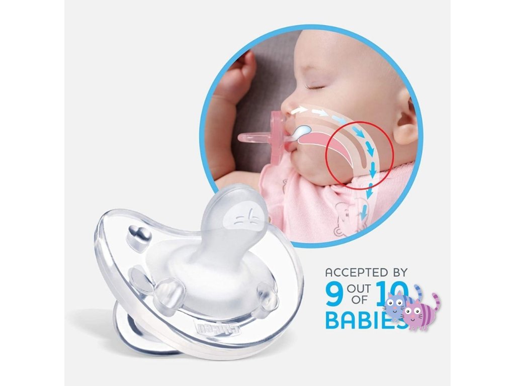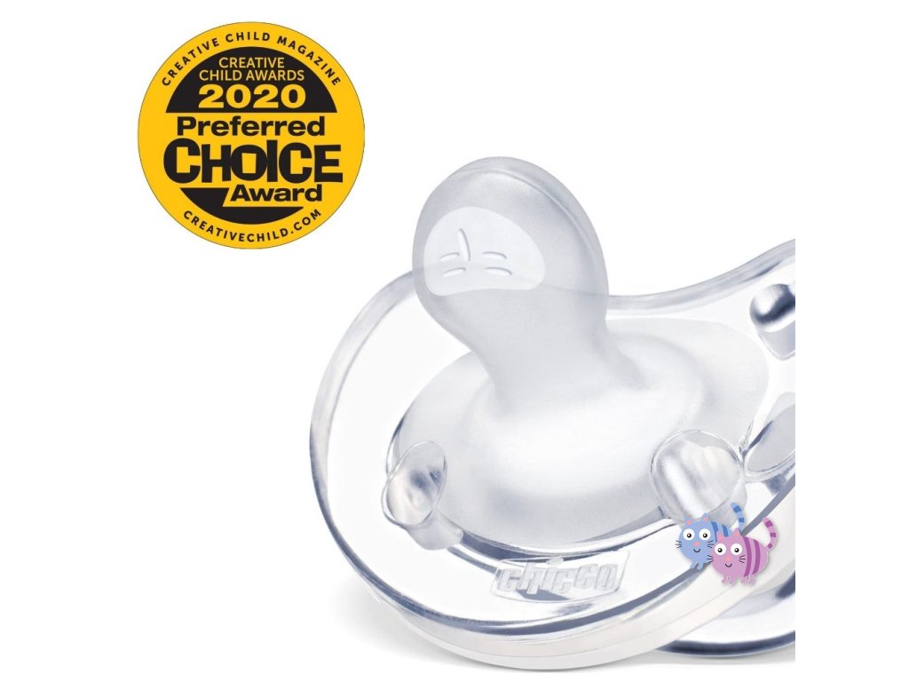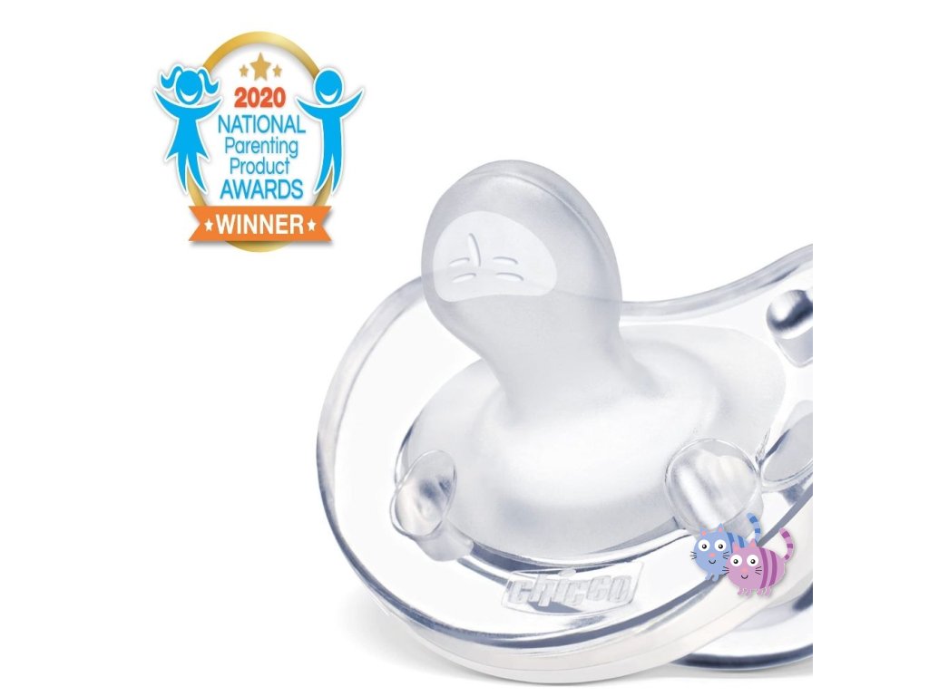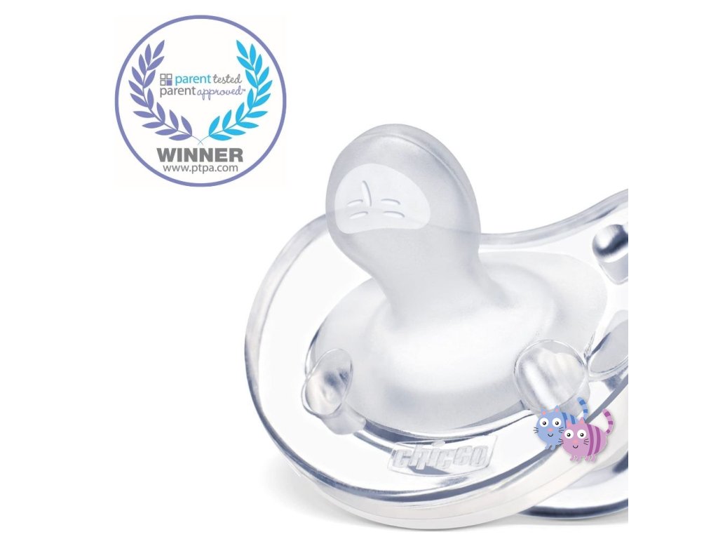 Celosilikónový dudlík Chicco Physio Soft řady Physioforma je unikátní aktivní ortodontický uklidňující dudlík vyrobený z jednoho kusu bez rušivých spojů. Celý dudlík je ze 100% hygienického silikonu s hedvábným povrchem, tedy z materiálu, který se nedeformuje, jeho povrch je extra hebký a jemný a vhodný i pro tu nejcitlivější pokožku.