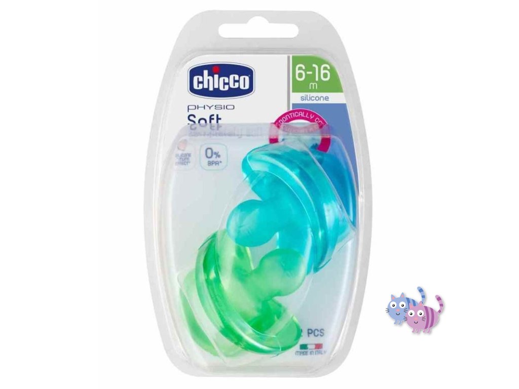 Celosilikónový dudlík Chicco Physio Soft řady Physioforma je unikátní aktivní ortodontický uklidňující dudlík vyrobený z jednoho kusu bez rušivých spojů. Celý dudlík je ze 100% hygienického silikonu s hedvábným povrchem, tedy z materiálu, který se nedeformuje, jeho povrch je extra hebký a jemný a vhodný i pro tu nejcitlivější pokožku.