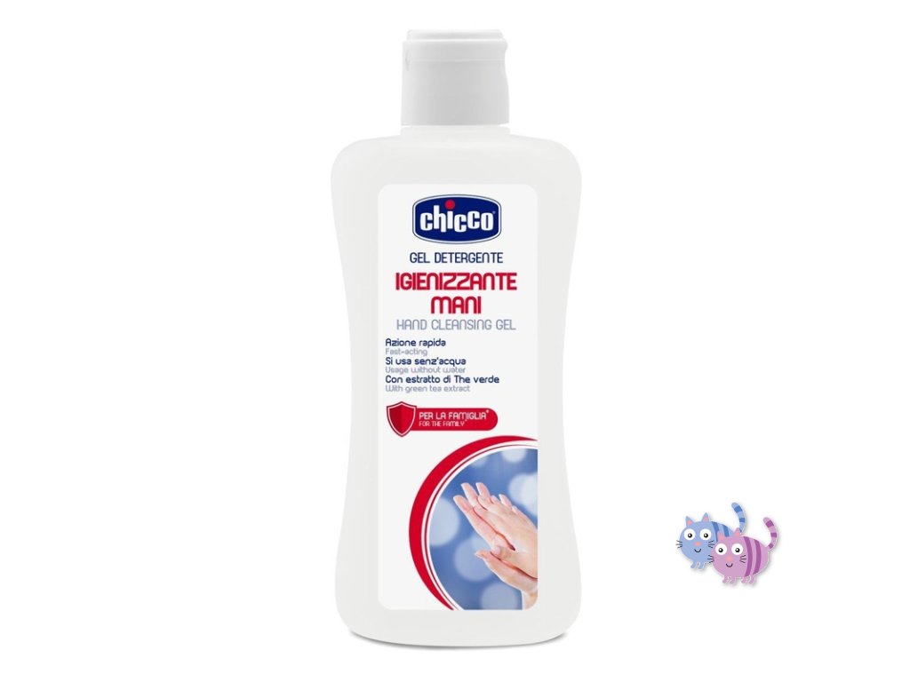Díky jemnému a ohleduplnému složení k pokožce je dezinfekční gel na ruce Chicco vhodný pro celou rodinu.
