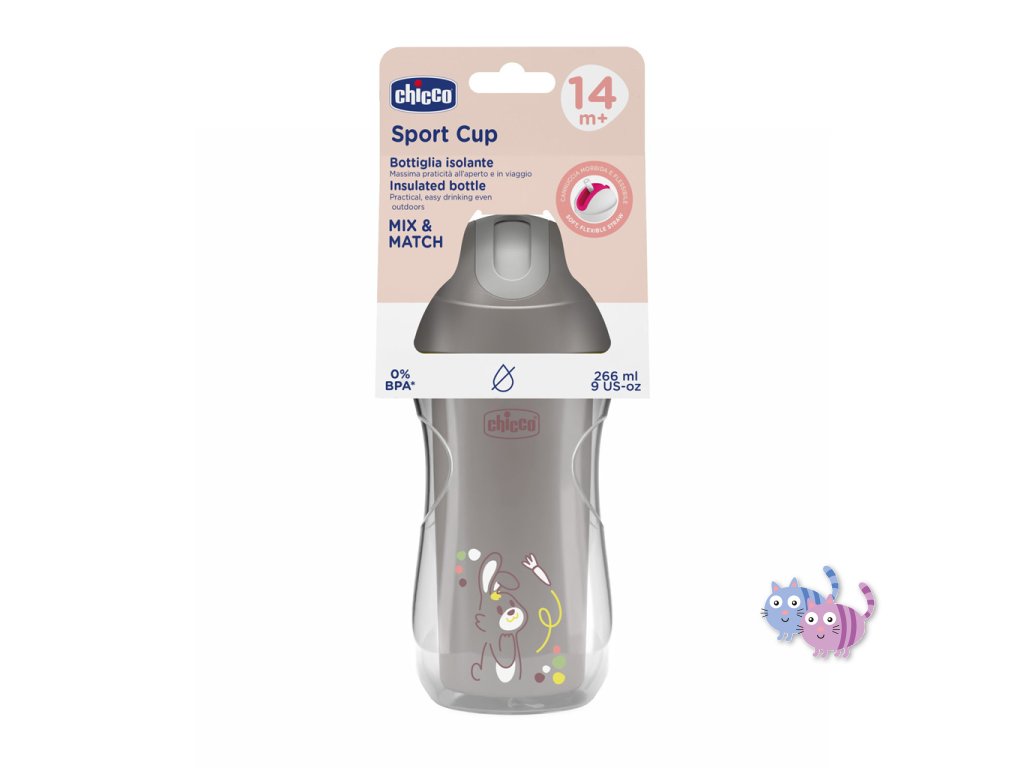 CHICCO Hrneček Sport termo se slámkou grey, 14m+