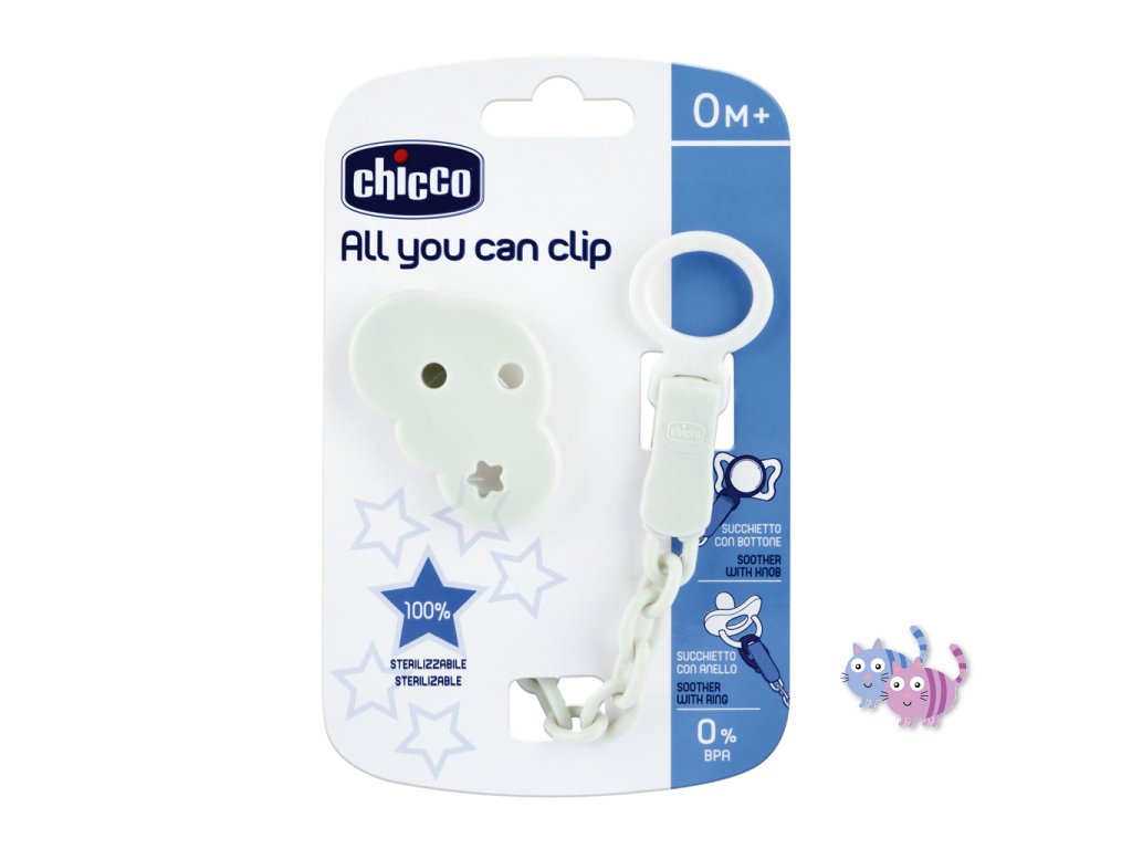 Univerzální klip na dudlíky je navržen tak, aby se přizpůsobil všem typům dudlíků - s kroužkem i knoflíkem. Díky klipu je oblíbená savička vždy na dosah dítěte.