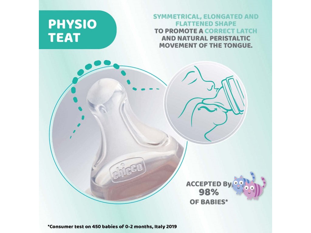 Chicco Perfect 5 je bio-funkční kojenecká láhev, která se přizpůsobuje potřebám vašeho dítěte díky intuitivnímu systému tečení: inovativní systém byl navržen tak, aby podporoval a uměl se přizpůsobit fyziologickému sání každého dítěte, aby se během a po krmení cítilo spokojené a uvolněné.