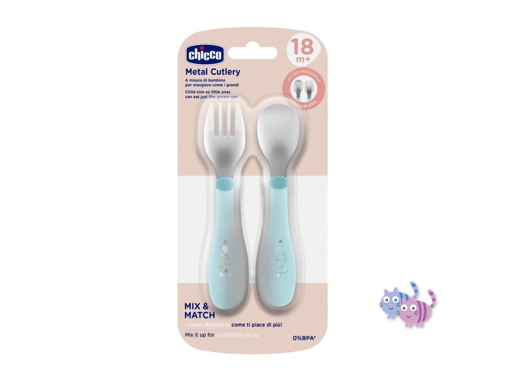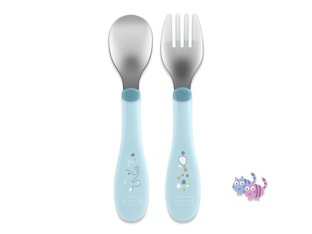 CHICCO Lžička a vidlička nerez - teal, 18m+