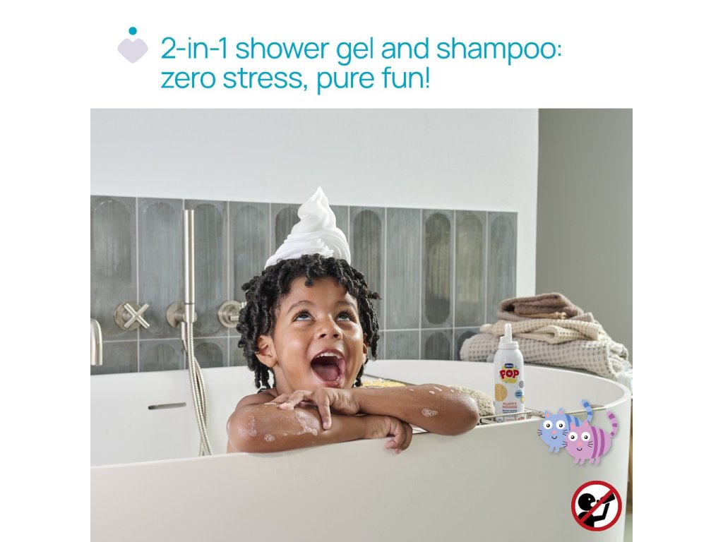 Chicco Pop je kosmetická řada navržená tak, aby byl čas koupání vzrušující a zábavný pro všechny děti.