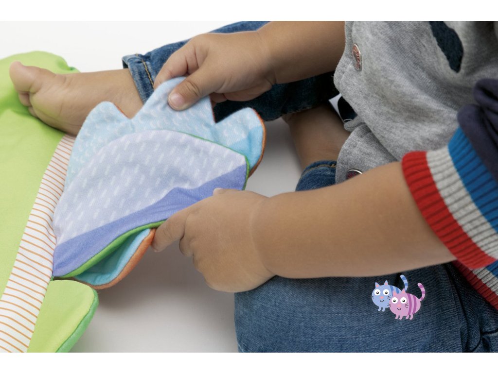 - Bohatá na hmatové podněty díky tělu, které lze naplnit vodou a nafouknout vzduchem, různými tkaninami a efektu mačkání a šustění