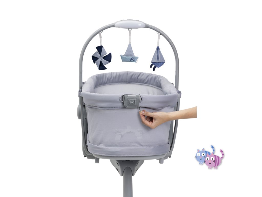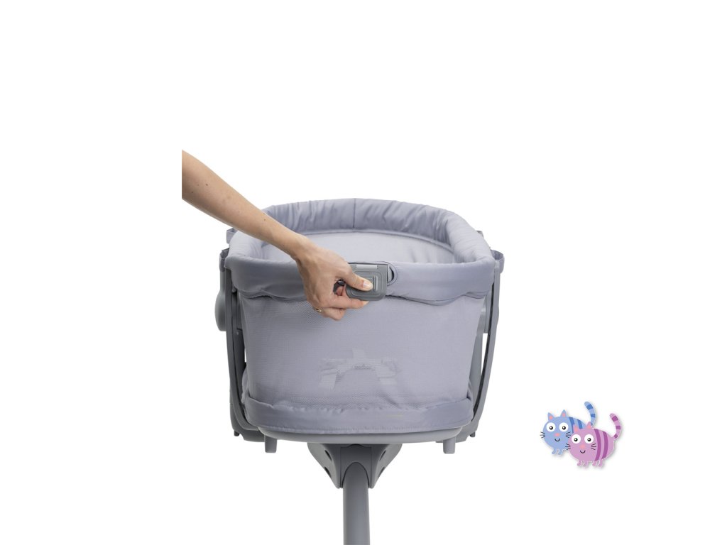 - Postýlku lze snadno odpojit od konstrukce a zvednout díky čtyřem úchytům.