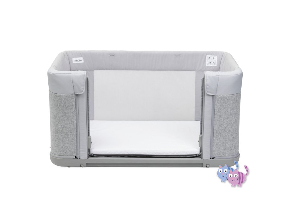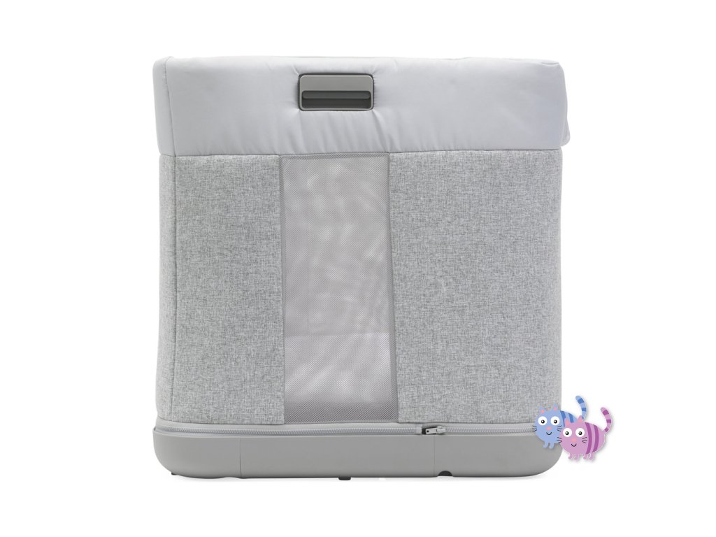 - nohy postýlky jsou sklopné, takže je možné postýlku připojit i k posteli s úložným prostorem