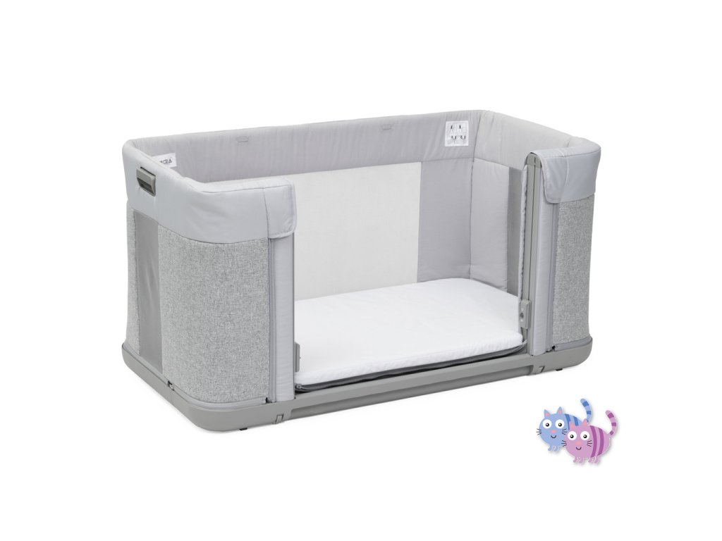 - patentovaný systém zabraňuje tomu, aby boční strana zůstala spuštěna, když není dětská postýlka zcela připevněna k rodičovské posteli
