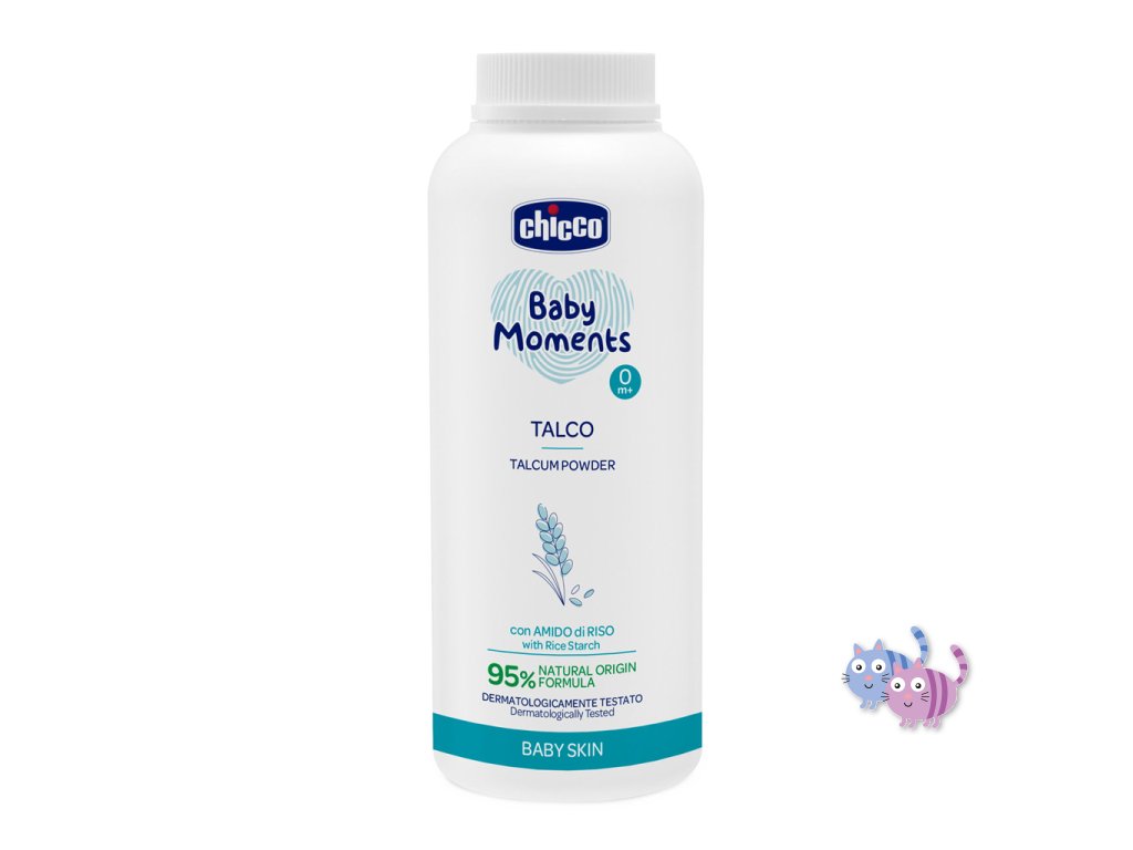CHICCO Pudr dětský Baby Moments s ryžovým škrobem 95 % přírodních složek 150 g