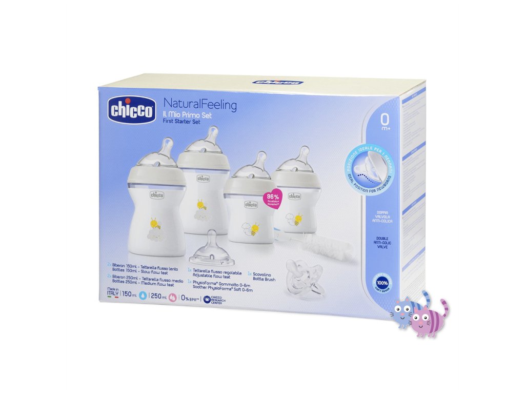 Dárková sada z kolekce Natural Feeling je Ideálním dárkem pro budoucí rodiče. Zaručuje maximální přirozenost a snadné použití v kombinaci s veselým a barevným designem. Set se skládá ze čtyř kojeneckých lahví různých velikostí, náhradních dudlíků, kartáče na láhve a inovativního dudlíku Physio Soft, který svým jedinečným tvarem podporuje fyziologické dýchání dítěte.