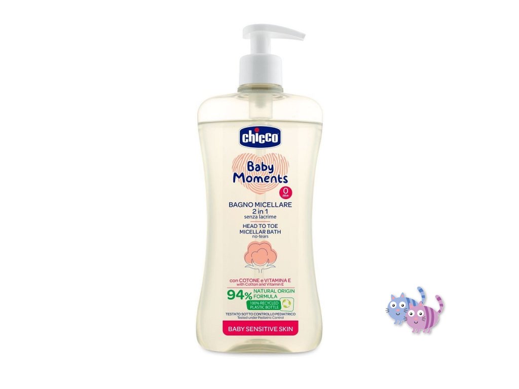 CHICCO Šampon micelární na vlasy a tělo s dávkovačem Baby Moments Sensitive 94% přírod. složek 500ml