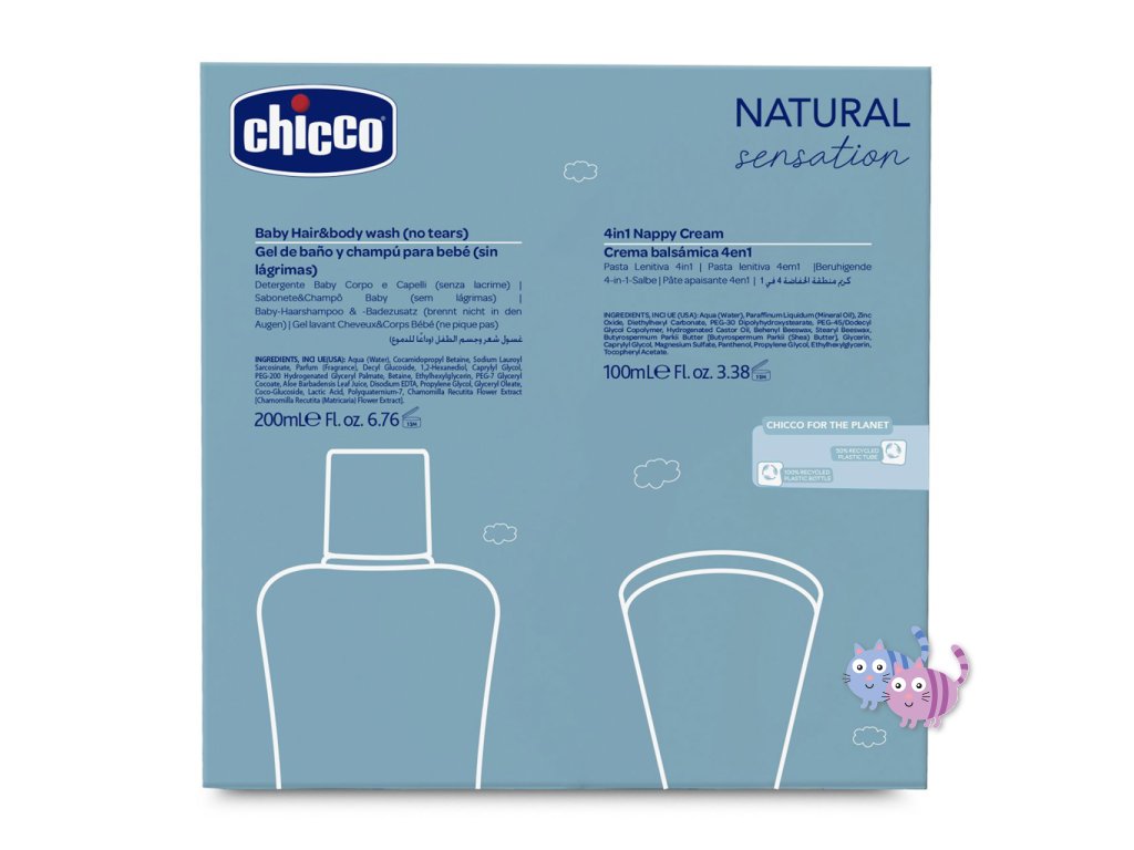 Šampon na vlasy a tělo 2v1 Chicco Natural Sensation je ideální pro mytí děťátka v jednom kroku. Myje dětskou pokožku s maximální jemností a zanechává ji jemnou a voňavou. Zanechává vlásky jemné, voňavé a snadno se rozčesávají. Jednoduše se oplachuje.