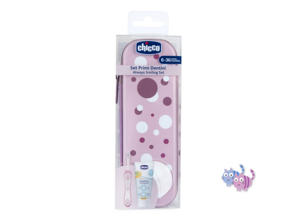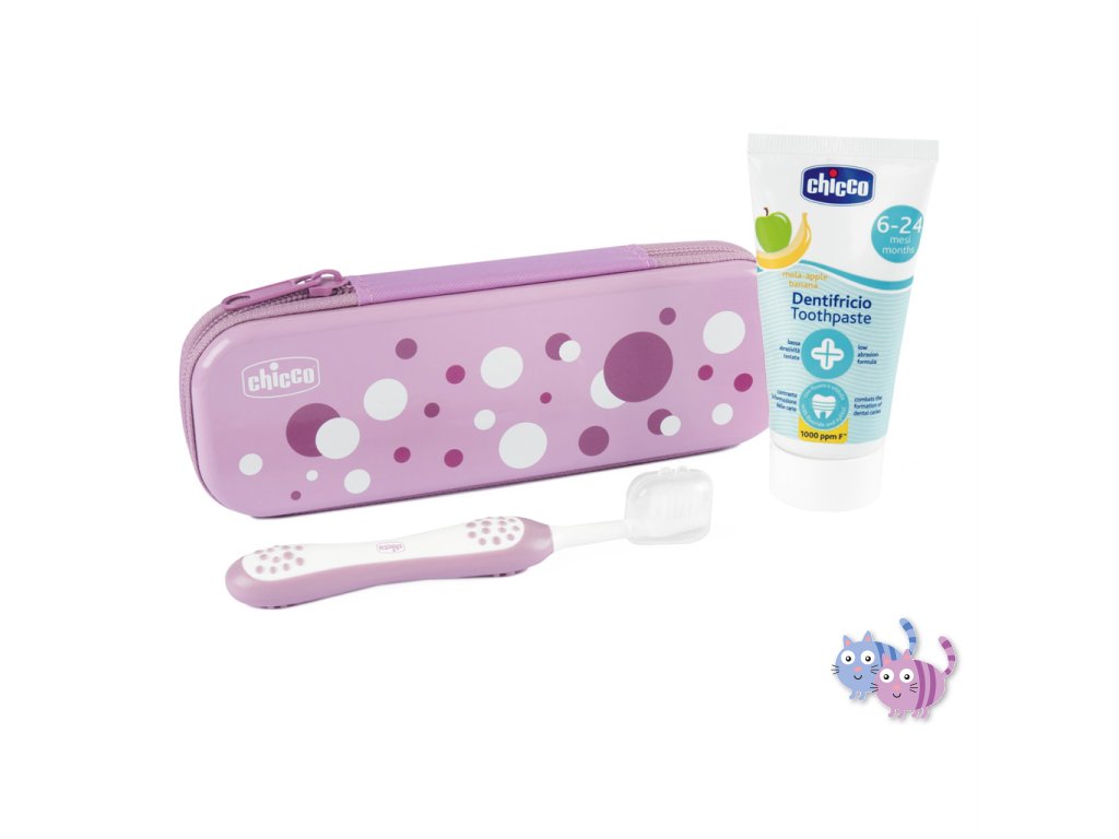 CHICCO Set zubní kartáček a pasta v pouzdře Always smiling - lilac, 6m+