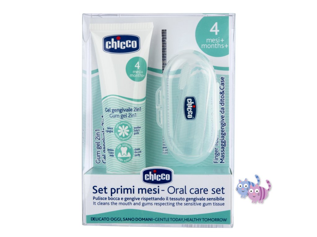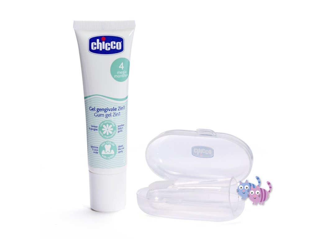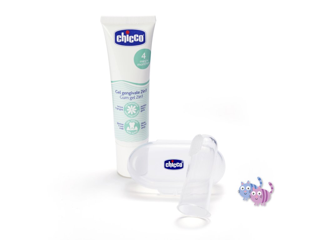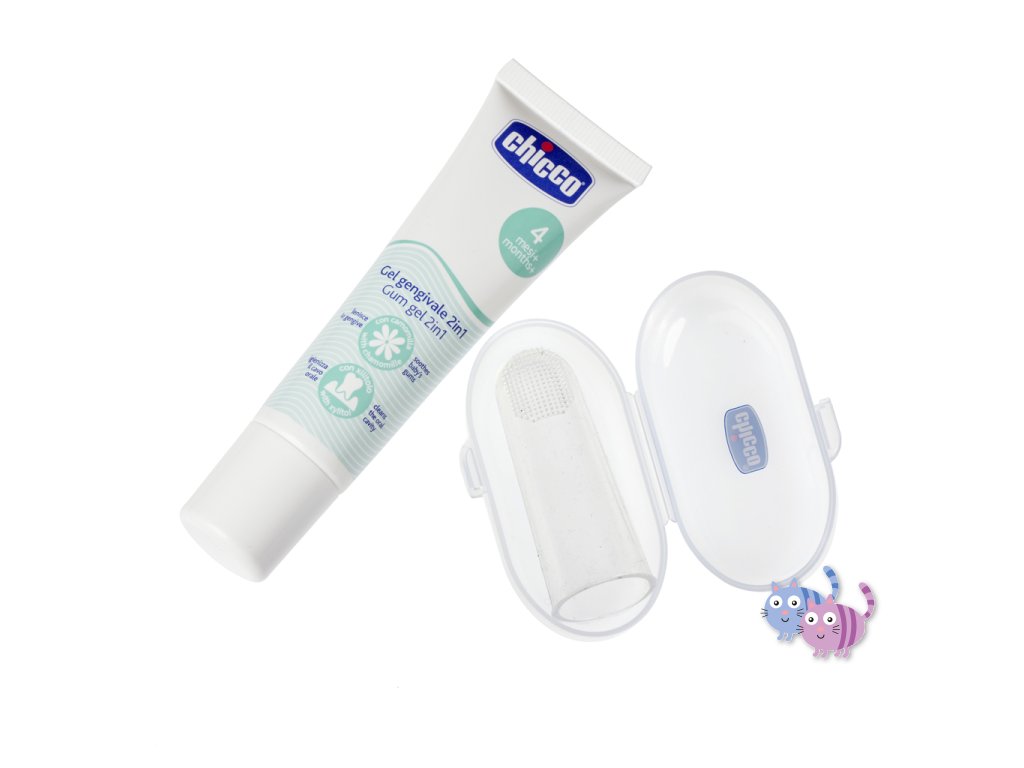 CHICCO Set zubní uklidňující gel a kartáček na prst s pouzdrem 4m+