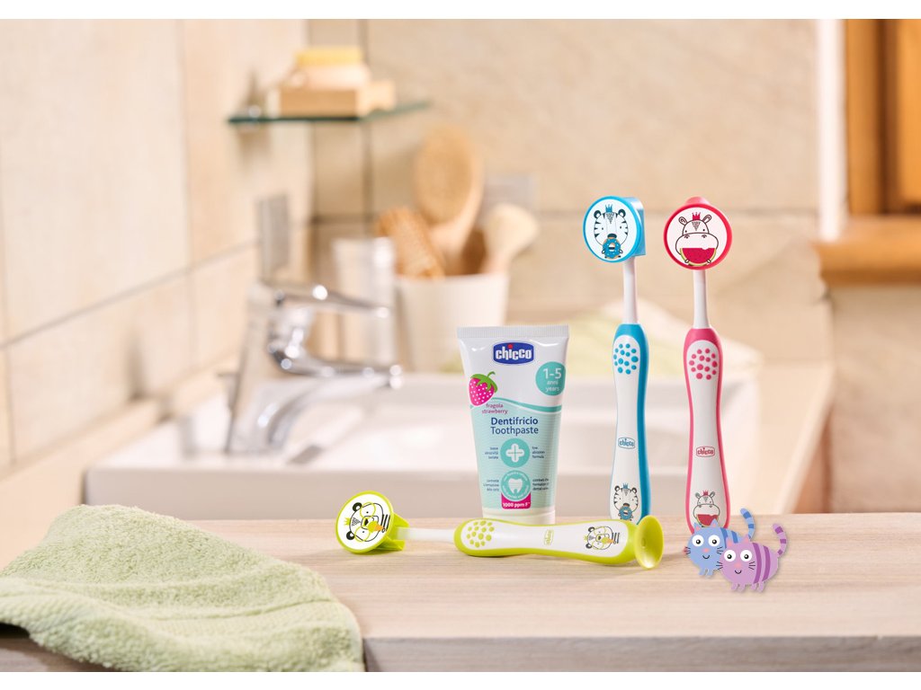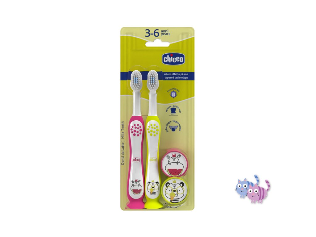Produkty zubní péče značky Chicco jsou navrženy tak, aby optimálně reagovaly na potřeby dětí ve všech fázích jejich růstu. Extra jemné štětinky mají jemné, kuželovitě tvarované konce pro citlivé, ale efektivní čištění a šetrnost k zubní sklovině a citlivým dásním.