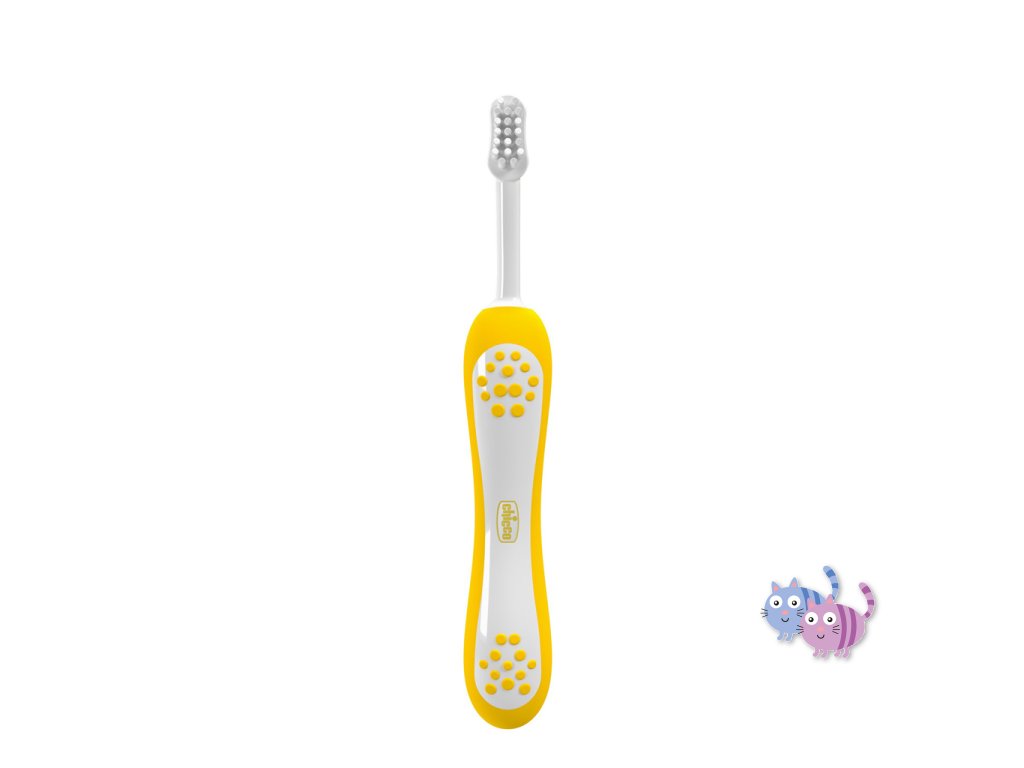 Produkty zubní péče značky Chicco jsou navrženy tak, aby optimálně reagovaly na potřeby dětí ve všech fázích jejich růstu. Extra jemné štětinky mají ultra jemné, kuželovitě tvarované konce pro jemné, ale efektivní čištění a šetrnost k zubní sklovině a citlivým dásním.