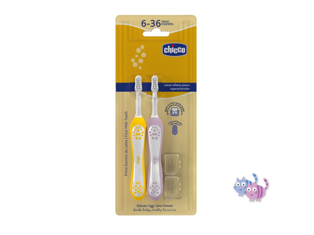 Zubní kartáčky Chicco jsou díky velmi jemným měkkým štětinkám ideální pro citlivé čištění zoubků a dásní již od objevení prvního mléčného zubu. Každodenní dentální hygiena je správný návyk, který je třeba naučit už i malé dětičky. Důležité je předcházet usazování bakterií a hlavně si zautomatizovat ta drobná gesta, která se u dospělých stanou zdravým zvykem.