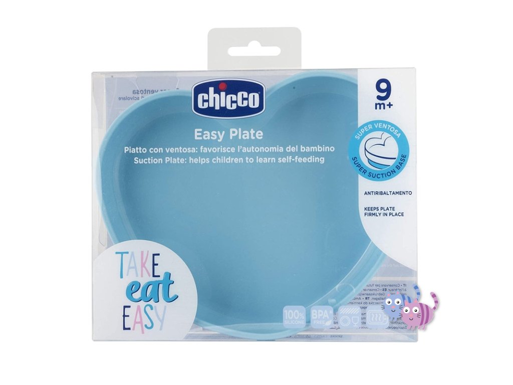 Silikonový talíř ve tvaru srdíčka z evoluční řady Chicco Take Eat Easy určené k dosažení samostatnosti při jedení je ideální pomocník pro dítě na cestě učení jíst bez pomoci druhých.
