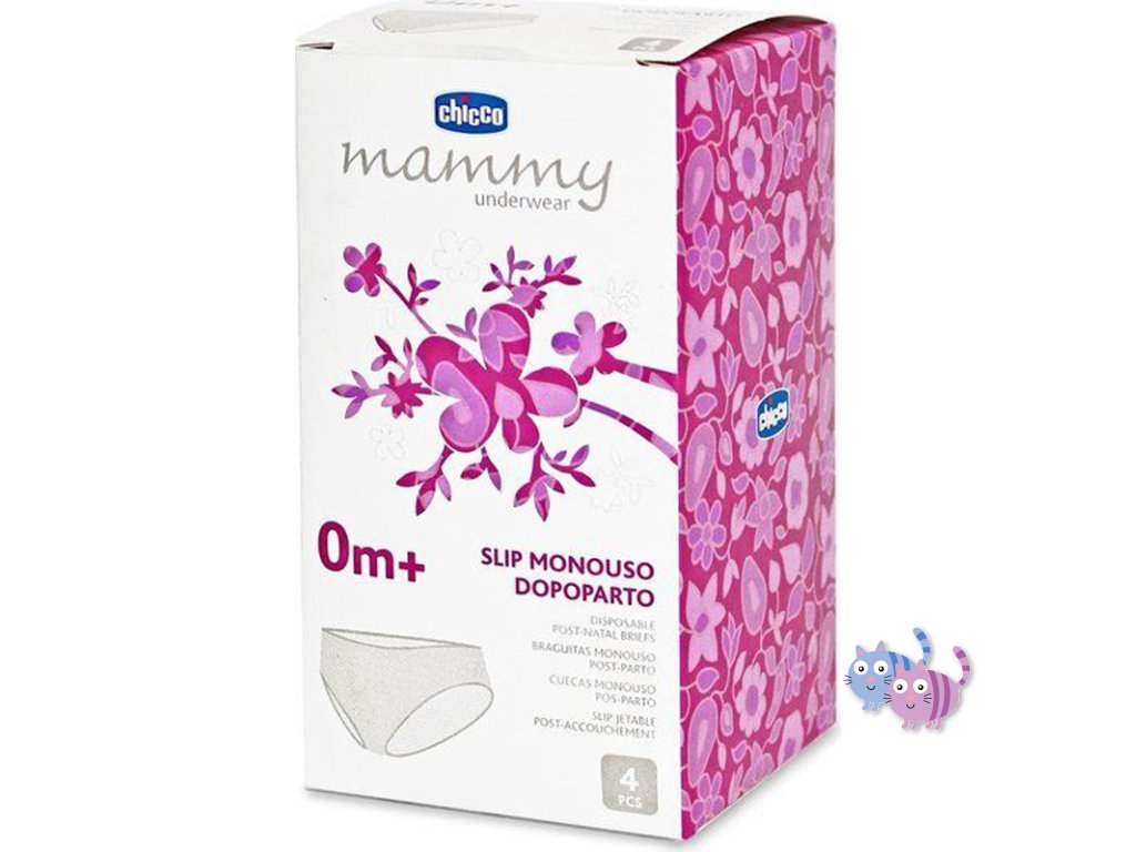 Chicco Mamma Donna jednorázové kalhotky po porodu jsou speciální jednorázové kalhotky vhodné pro první dny po porodu. Kalhotky zajistí maminkám maximální hygienu a prodyšnost pokožky v poporodním období. Kalhotky jsou vyrobeny z netkaného textilu. Jsou hygienické, extra prodyšné.